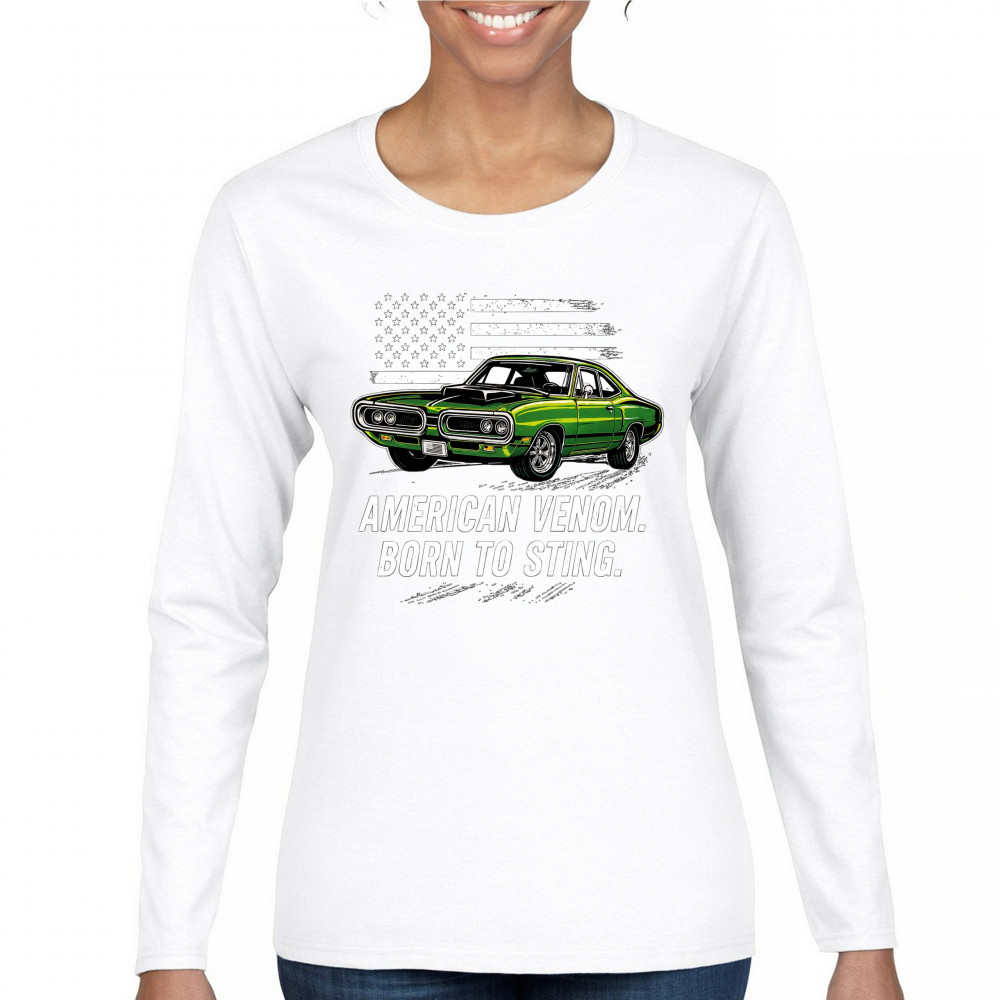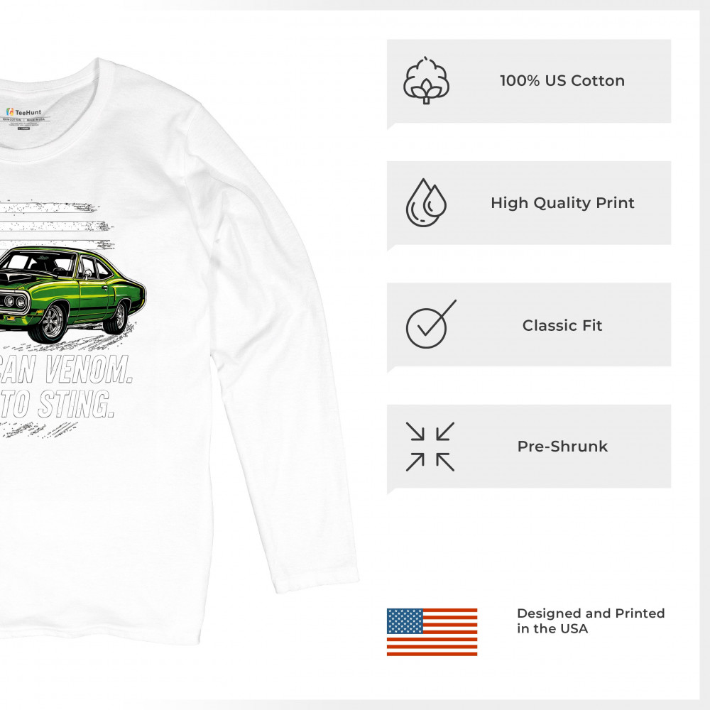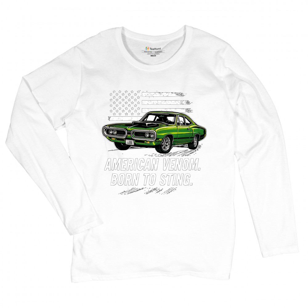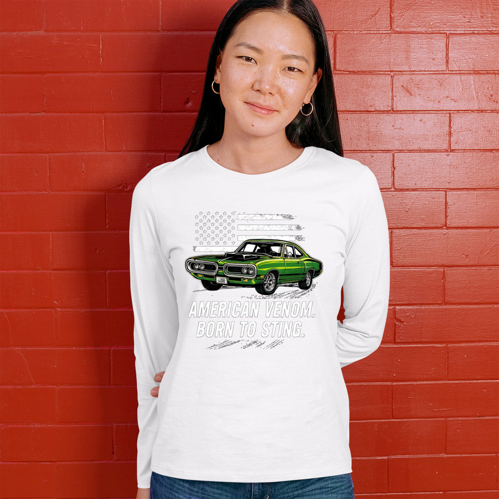Inject venom into your street style with this bold green muscle car design. With “Born to Sting†power and a backdrop of American pride, this graphic is perfect for Scat fans, gearheads, and drivers who embrace speed, dominance, and the sound of true muscle. Rule car meets, rev battles, and highway runs with unmatched attitude.