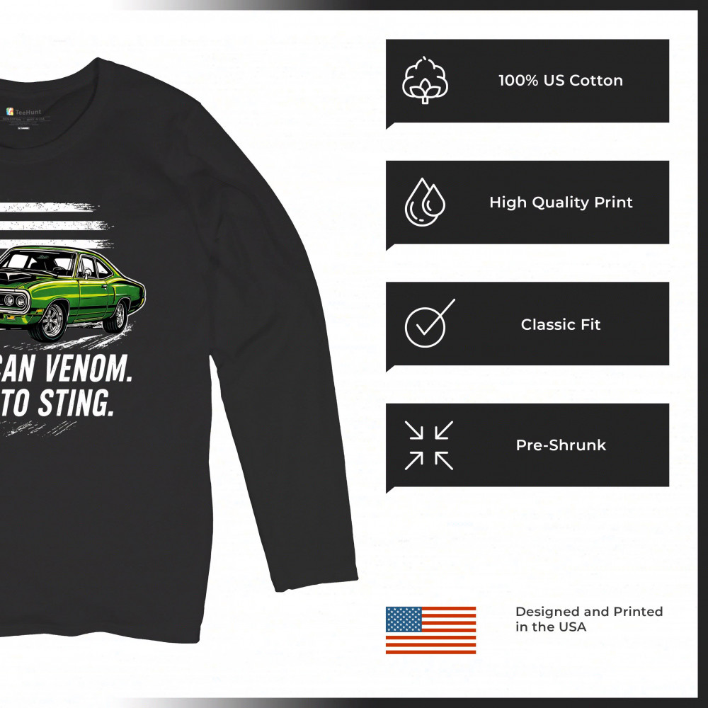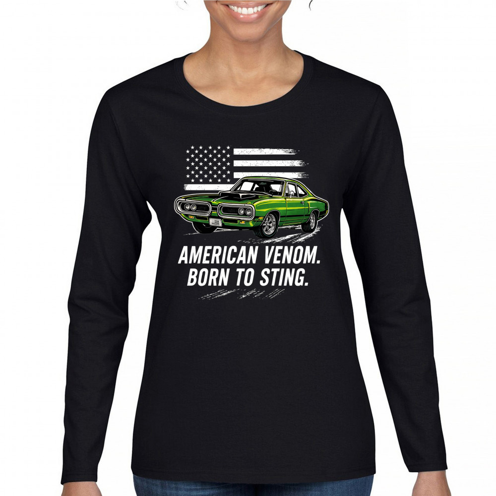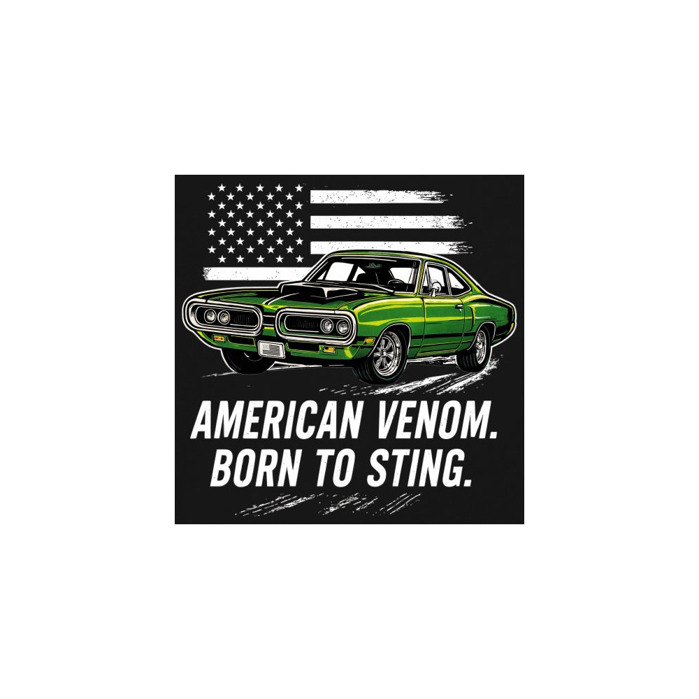 Inject venom into your street style with this bold green muscle car design. With “Born to Sting†power and a backdrop of American pride, this graphic is perfect for Scat fans, gearheads, and drivers who embrace speed, dominance, and the sound of true muscle. Rule car meets, rev battles, and highway runs with unmatched attitude.