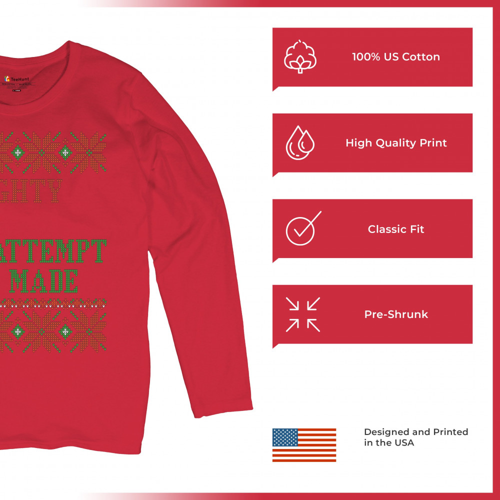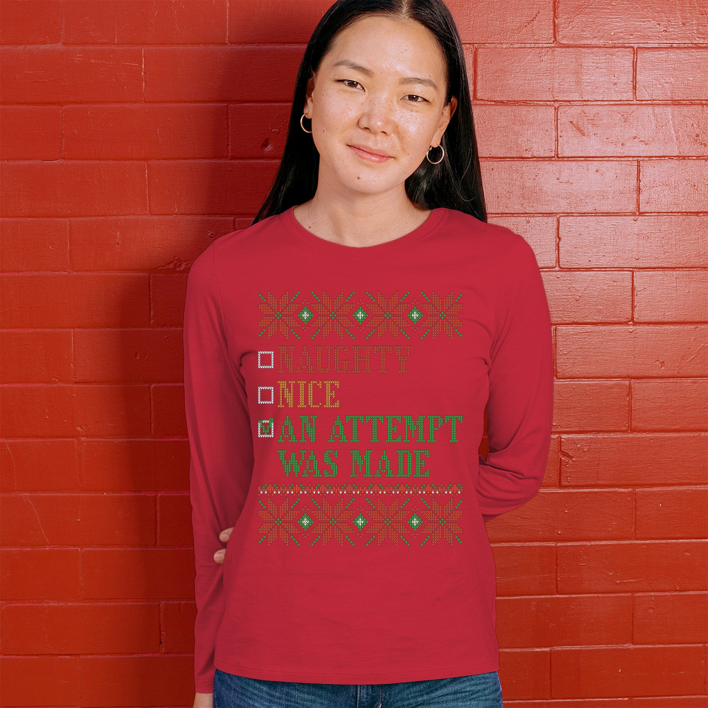 AN ATTEMPT WAS MADE women's long sleeve t-shirt ugly sweater naughty or nice red