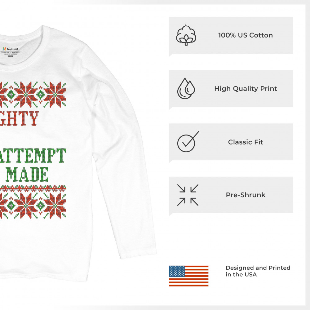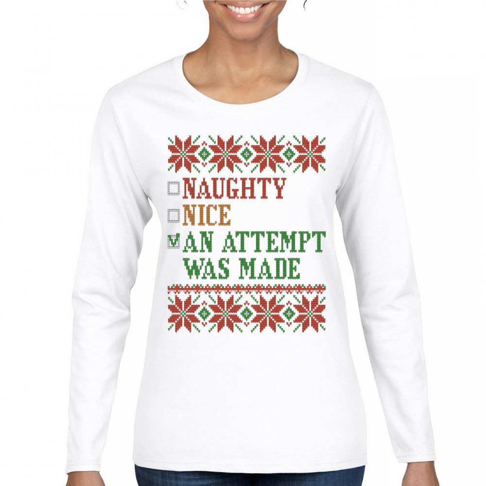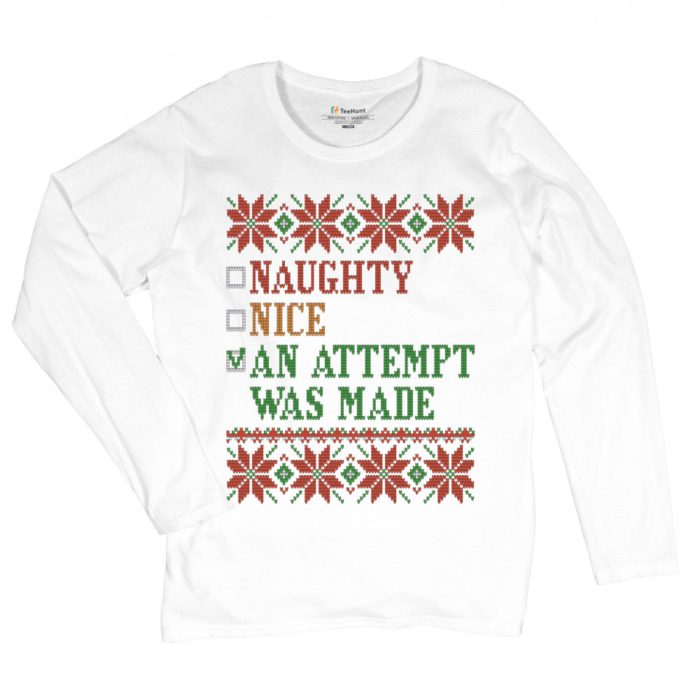 AN ATTEMPT WAS MADE women's long sleeve t-shirt ugly sweater naughty or nice white