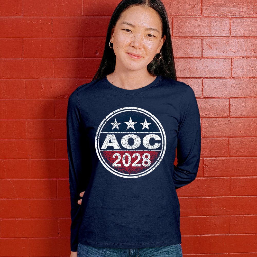 Show support for AOC 2028 with this patriotic distressed badge design. Great for progressives, rallies, events, and young political activists.