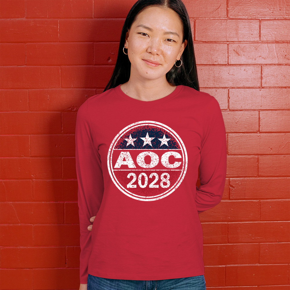 Show support for AOC 2028 with this patriotic distressed badge design. Great for progressives, rallies, events, and young political activists.