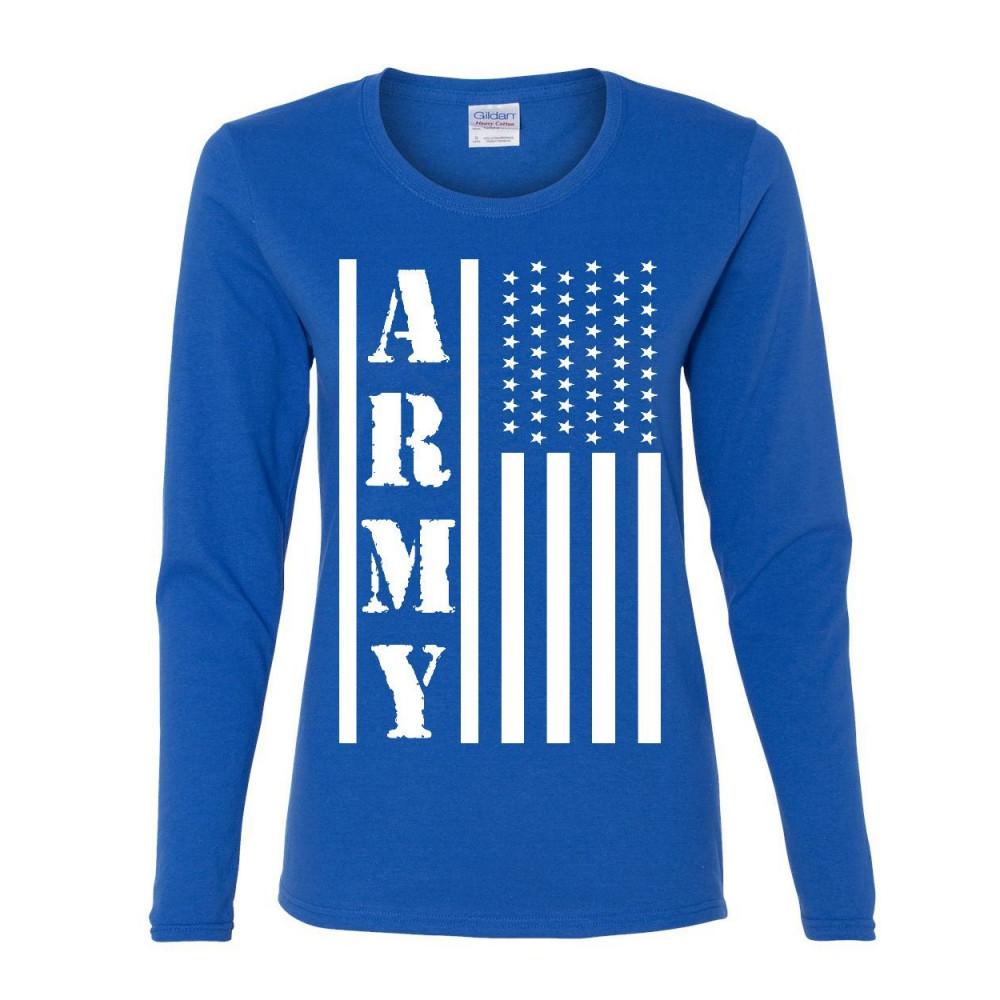 ARMY FLAG MILITARY women's long sleeve tee patriot veteran stars & stripes honor royal blue