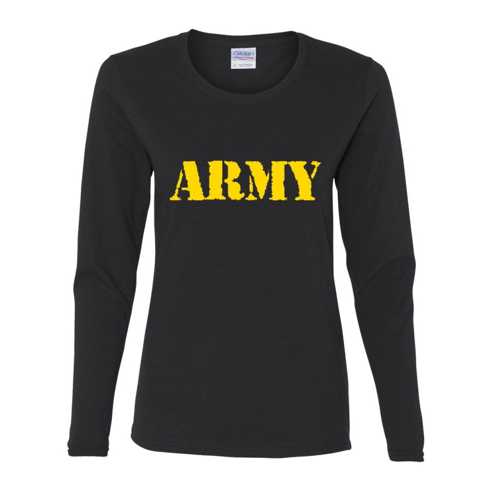 ARMY women's long sleeve tee military soldier pow mia patriotic veteran's day black