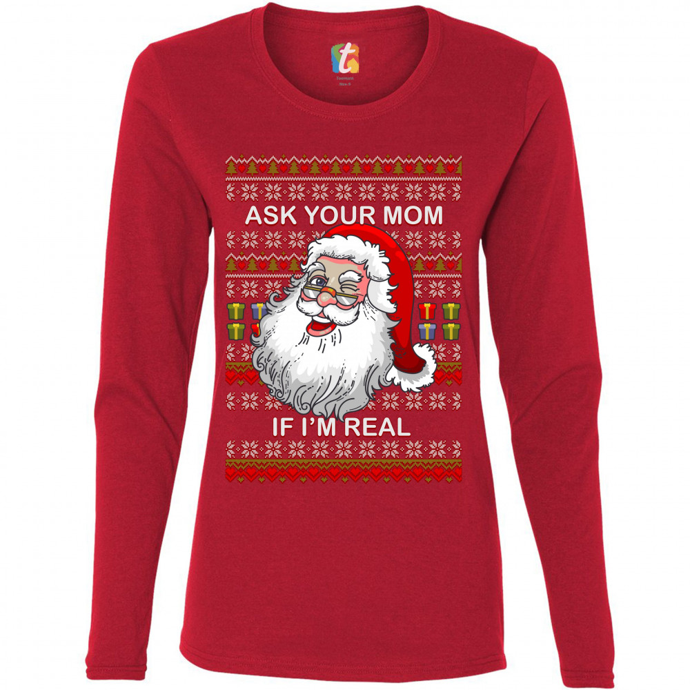 ASK YOUR MOM IF I'M REAL women's long sleeve t-shirt ugly sweater christmas red