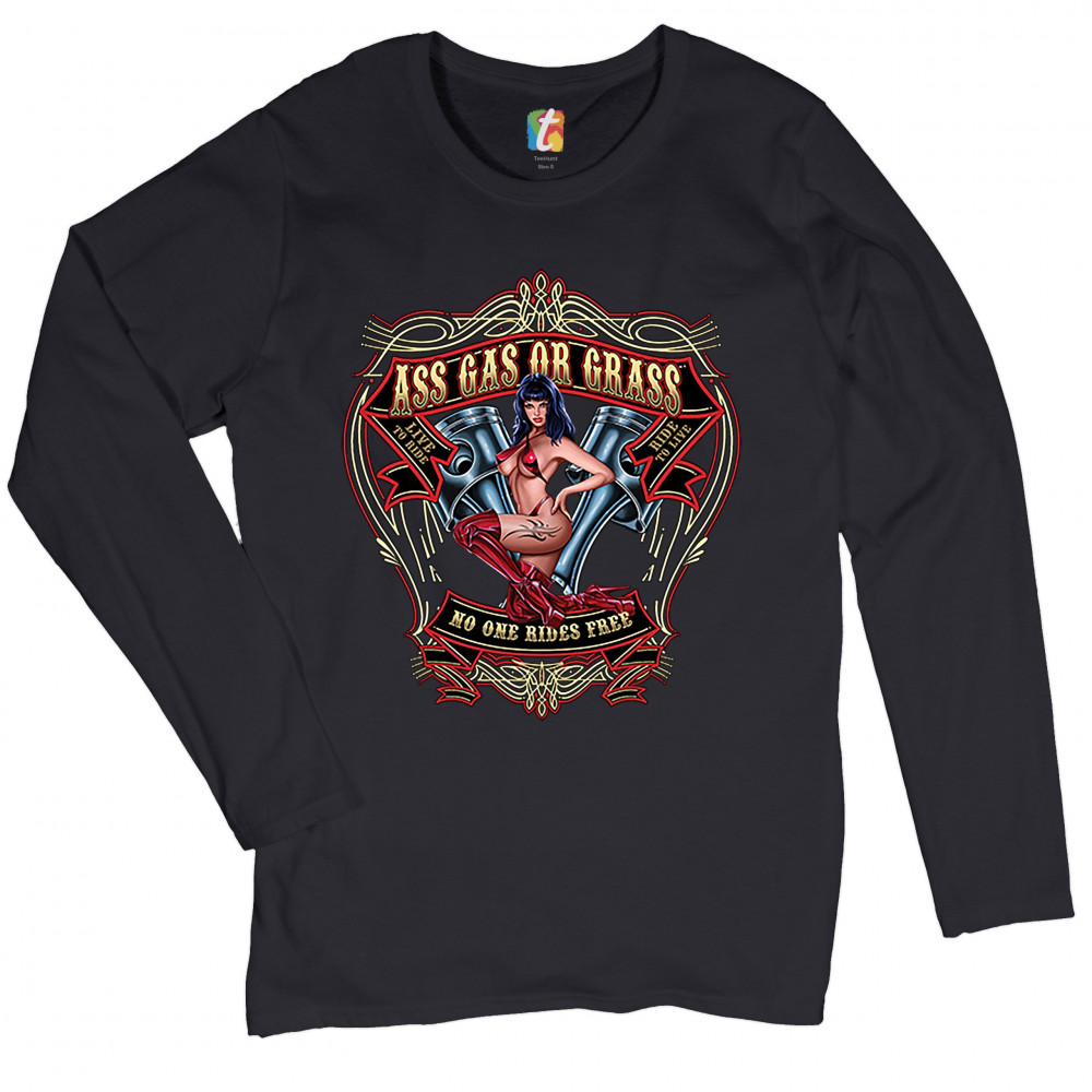 ASS GAS OR GRASS women's long sleeve t-shirt biker no one rides free route 66 black