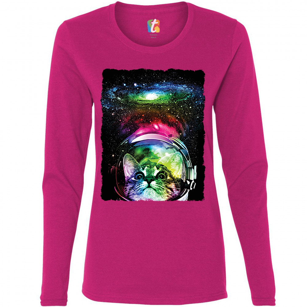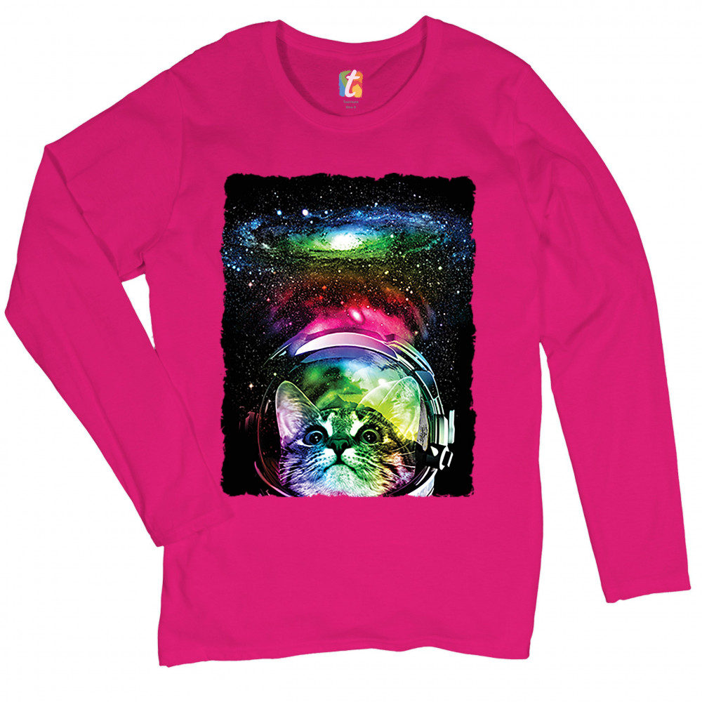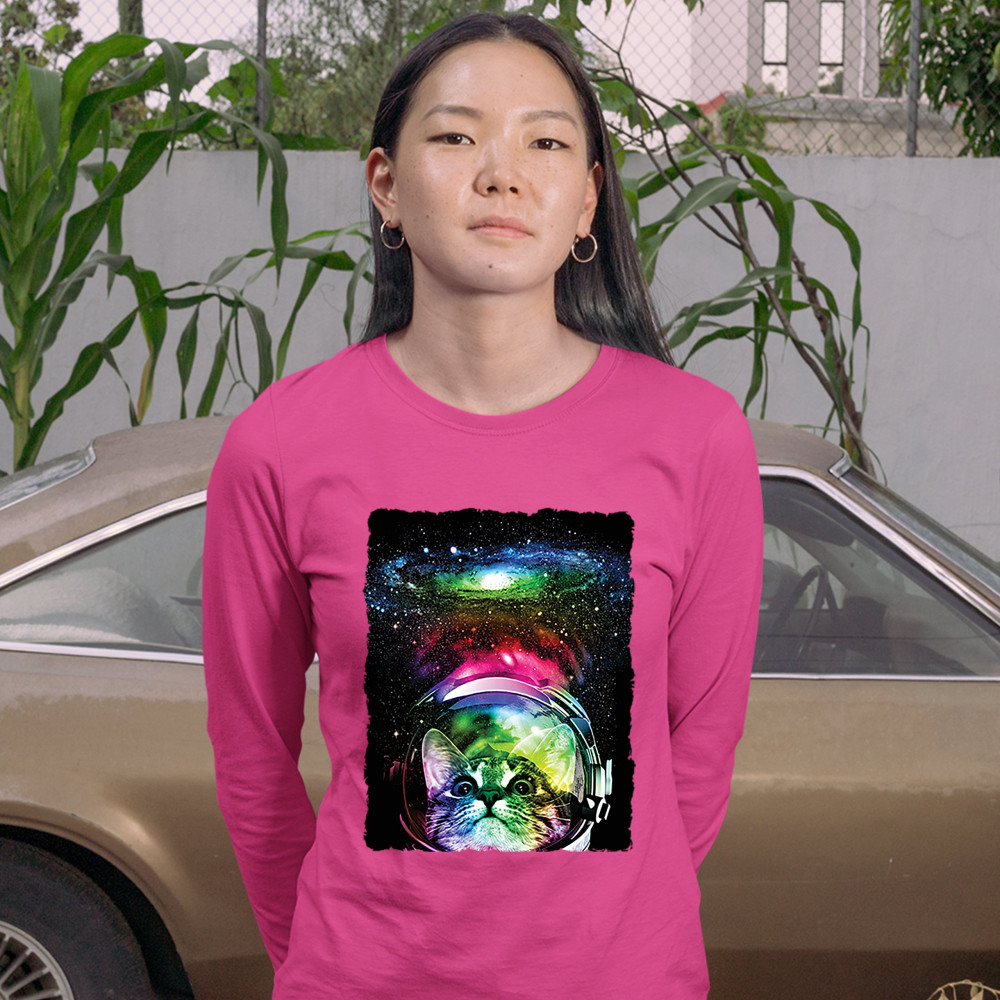 ASTRONAUT CAT women's long sleeve t-shirt space kitty pink