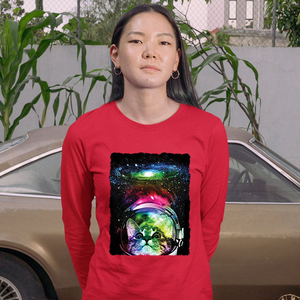 ASTRONAUT CAT women's long sleeve t-shirt space kitty red