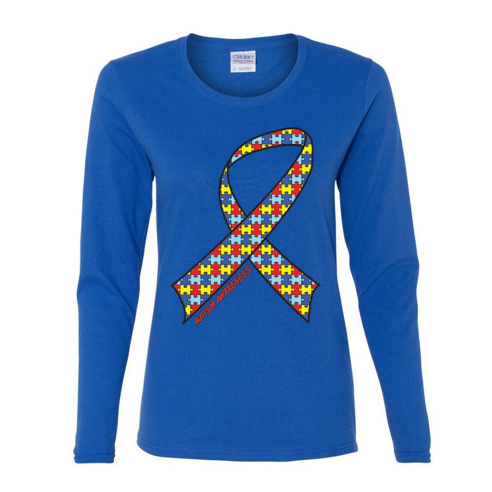 AUTISM AWARENESS RIBBON women's long sleeve tee support care love asd asperger royal blue