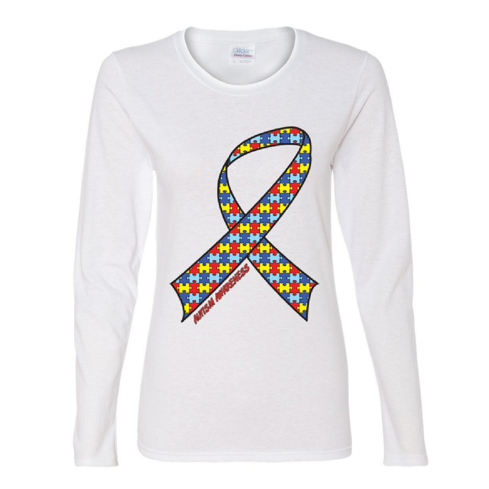 AUTISM AWARENESS RIBBON women's long sleeve tee support care love asd asperger white
