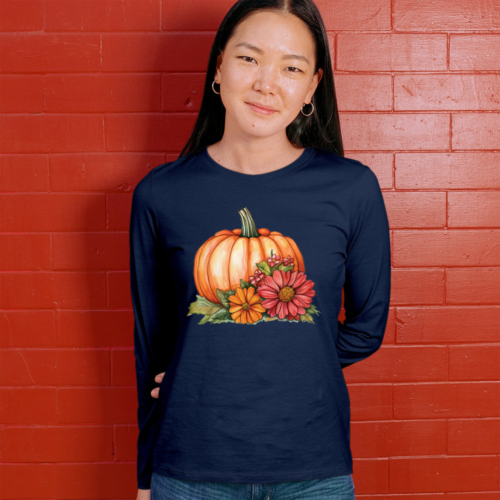 Celebrate autumn with our charming pumpkin and floral design. Perfect for seasonal decor, gifts, and showcasing your fall spirit. Ideal for Thanksgiving!
