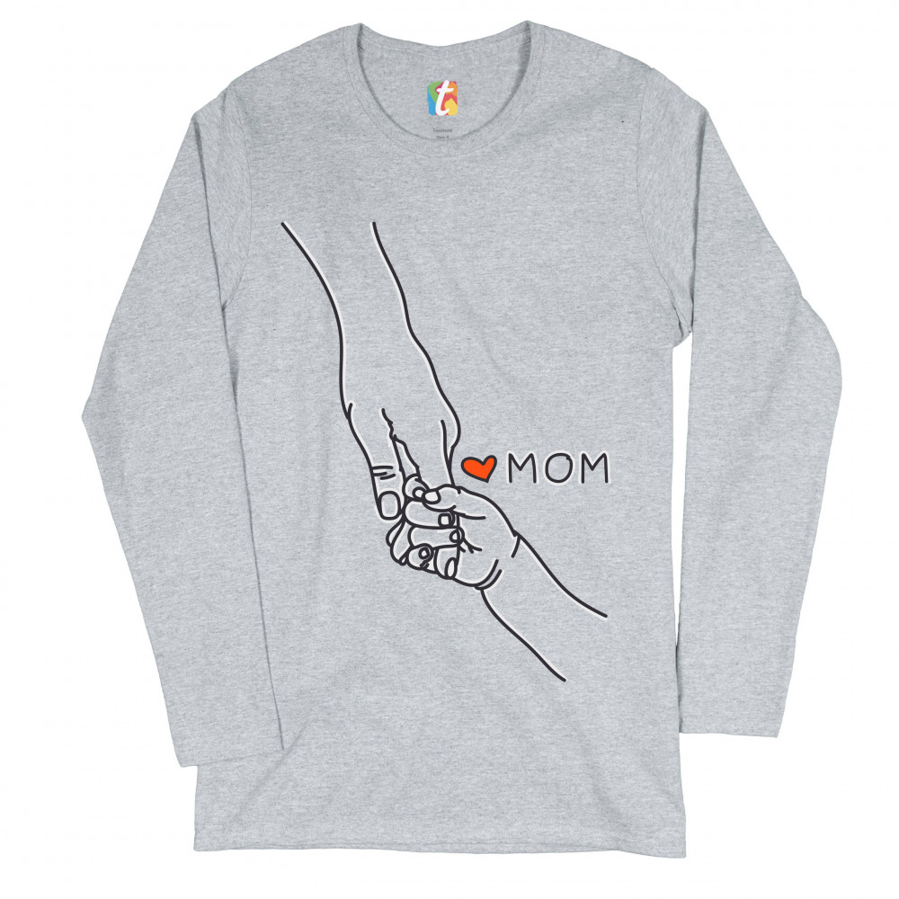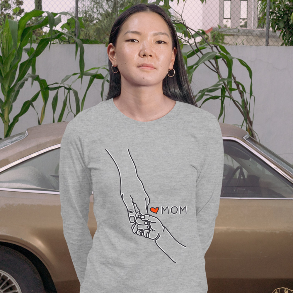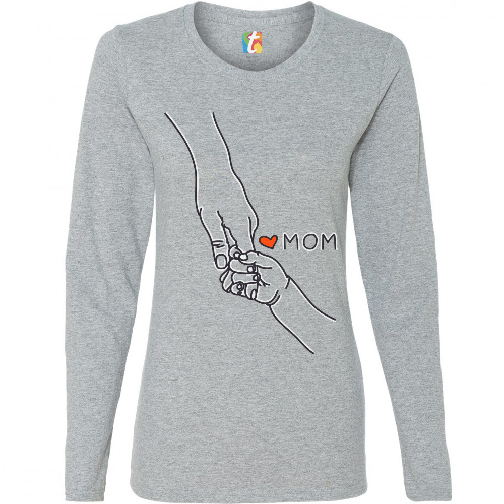 BABY HOLDING MOTHER'S HAND women's long sleeve t-shirt love my mom mother's day gray