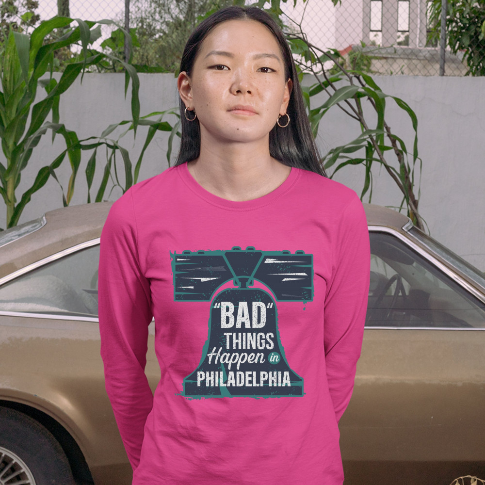 BAD THINGS HAPPEN IN PHILADELPHIA women's long sleeve t-shirt 2020 election pink
