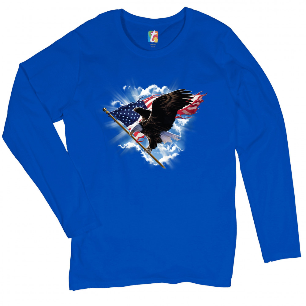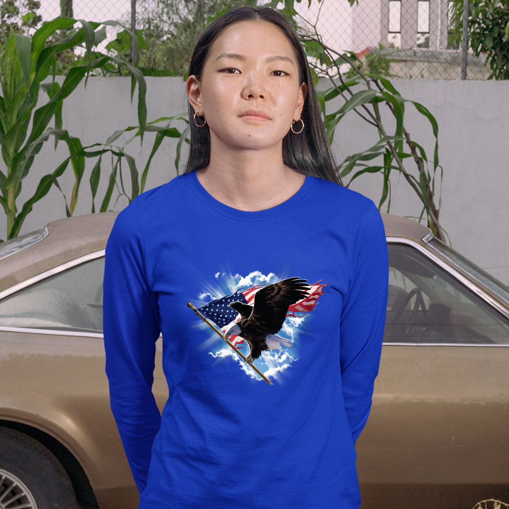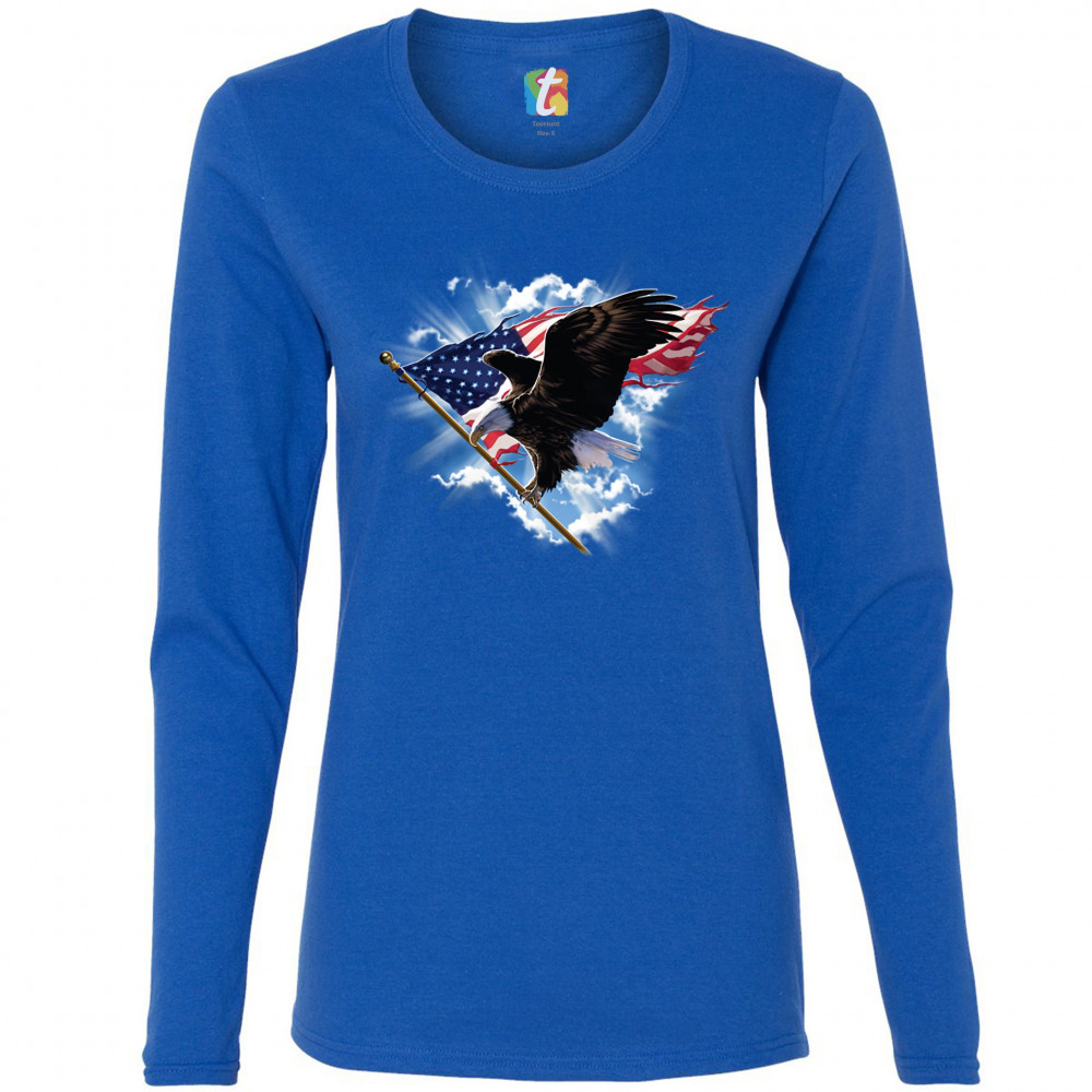 BALD EAGLE CARRYING THE AMERICAN FLAG women's long sleeve t-shirt 4th of july royal blue
