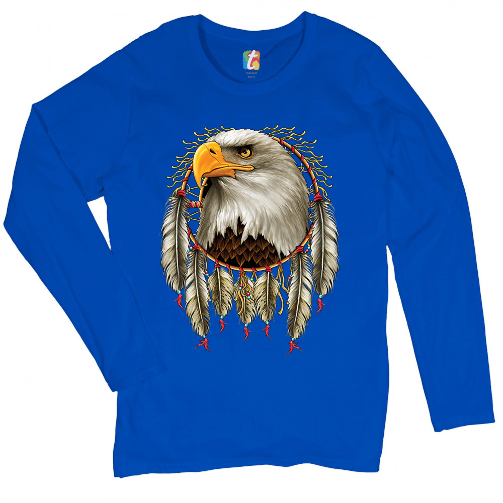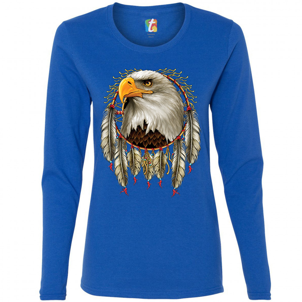 BALD EAGLE DREAMCATCHER women's long sleeve t-shirt indigenous native american royal blue