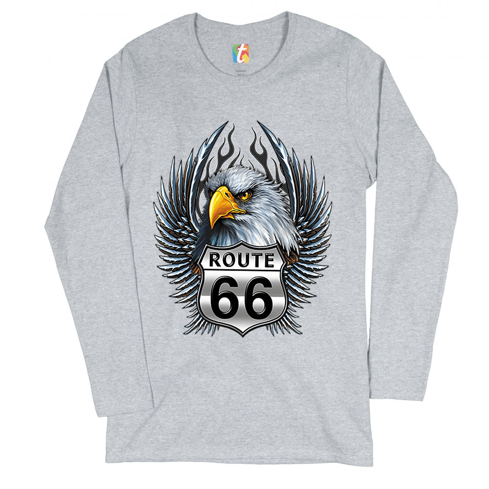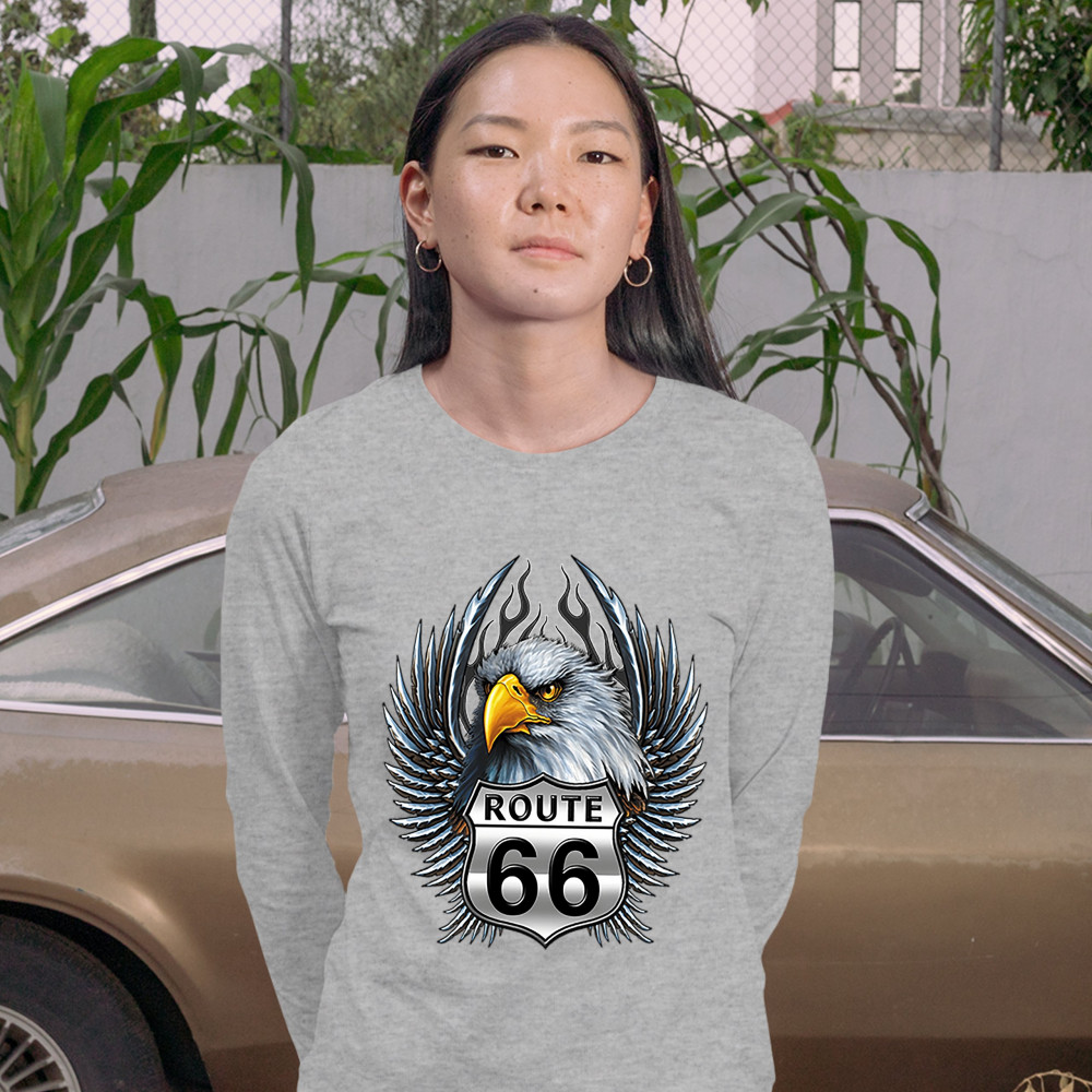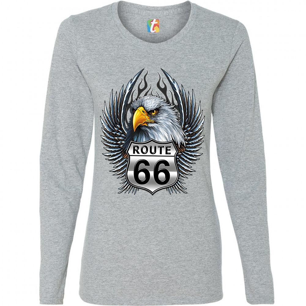 BALD EAGLE ROUTE 66 ROAD SIGN women's long sleeve t-shirt live to ride biker mc gray
