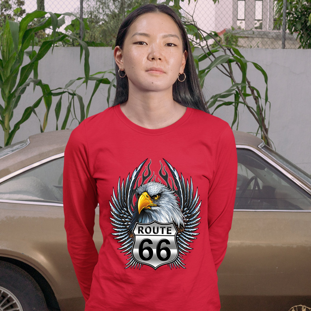 BALD EAGLE ROUTE 66 ROAD SIGN women's long sleeve t-shirt live to ride biker mc red