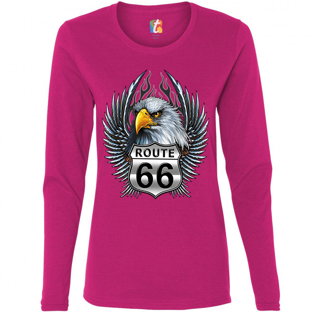 BALD EAGLE ROUTE 66 ROAD SIGN women's long sleeve t-shirt live to ride biker mc pink