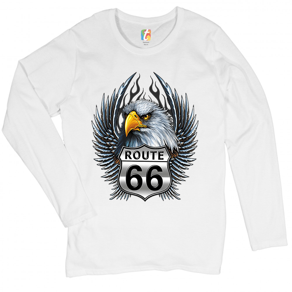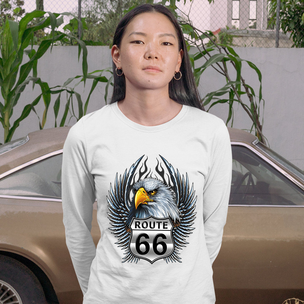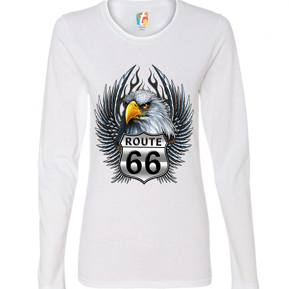 BALD EAGLE ROUTE 66 ROAD SIGN women's long sleeve t-shirt live to ride biker mc white
