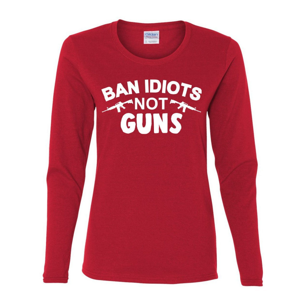 BAN IDIOTS NOT GUNS women's long sleeve tee patriot 2nd amendment pro guns arms red