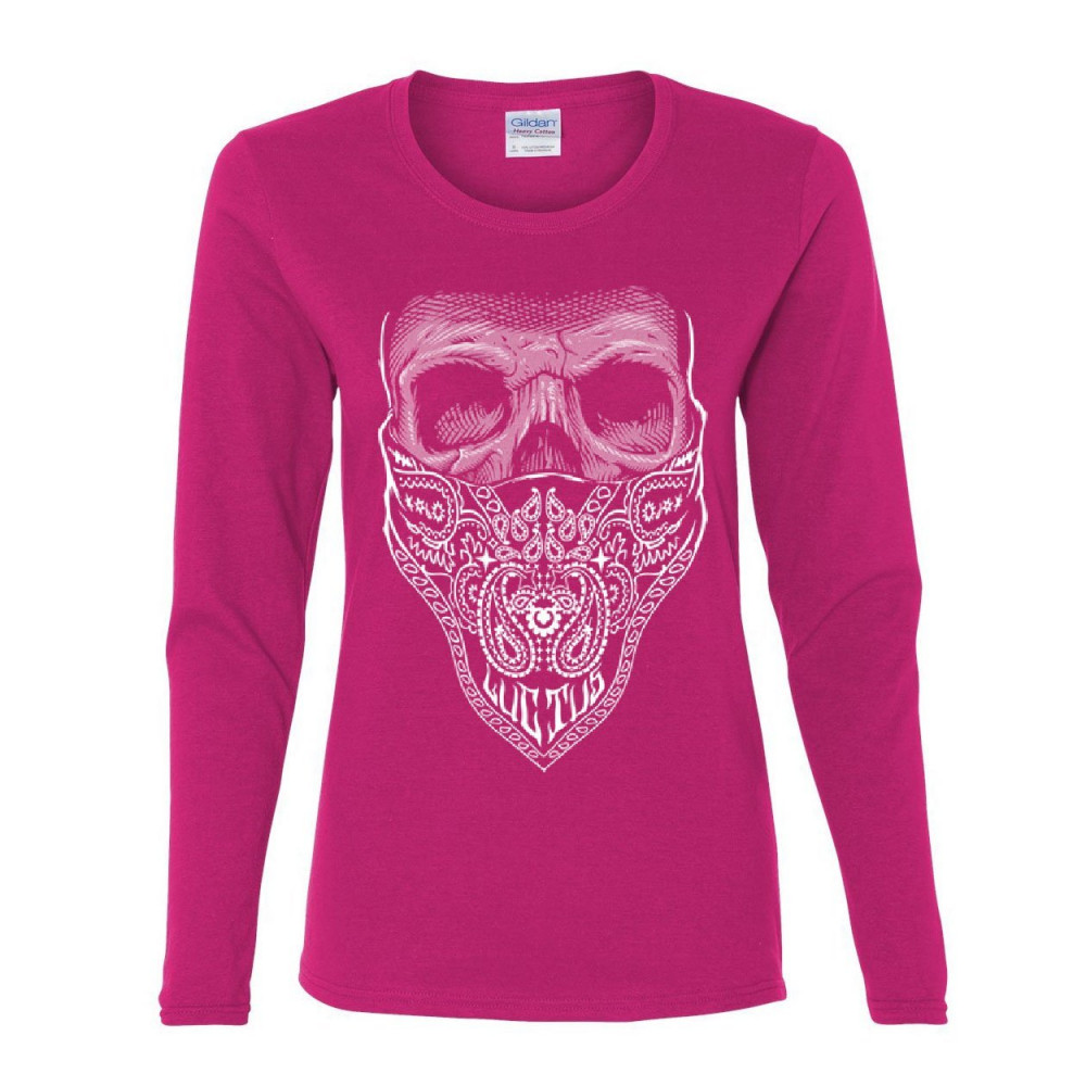 BANDANA SKULL women's long sleeve tee badass gangsta swag dead pink