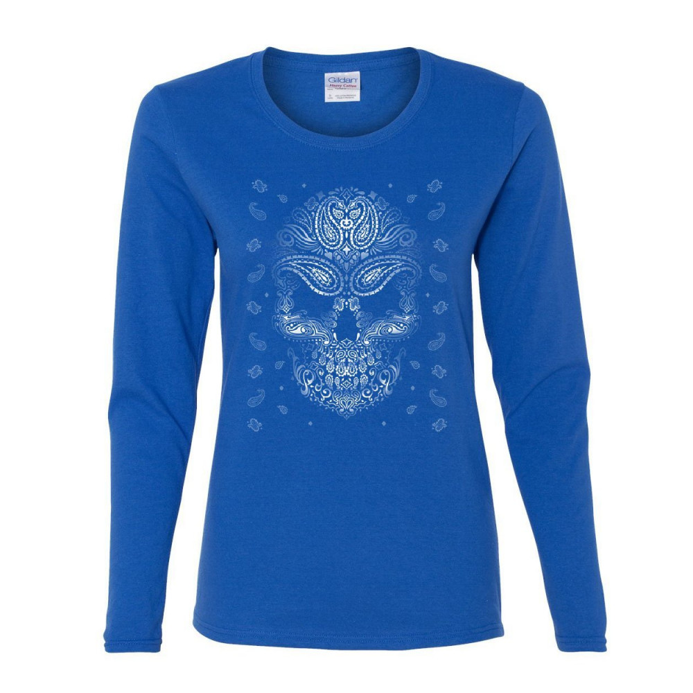 BANDANA SKULL FACE women's long sleeve tee gangsta badass swag urban skeleton royal blue