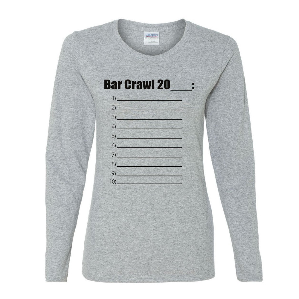 BAR CRAWL 20__ CHECK LIST women's long sleeve tee drinking college beer booze gray