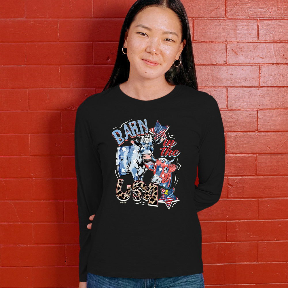 Celebrate American farming and patriotic spirit with our playful "Barn in the USA" design, a blend of whimsy and pride.