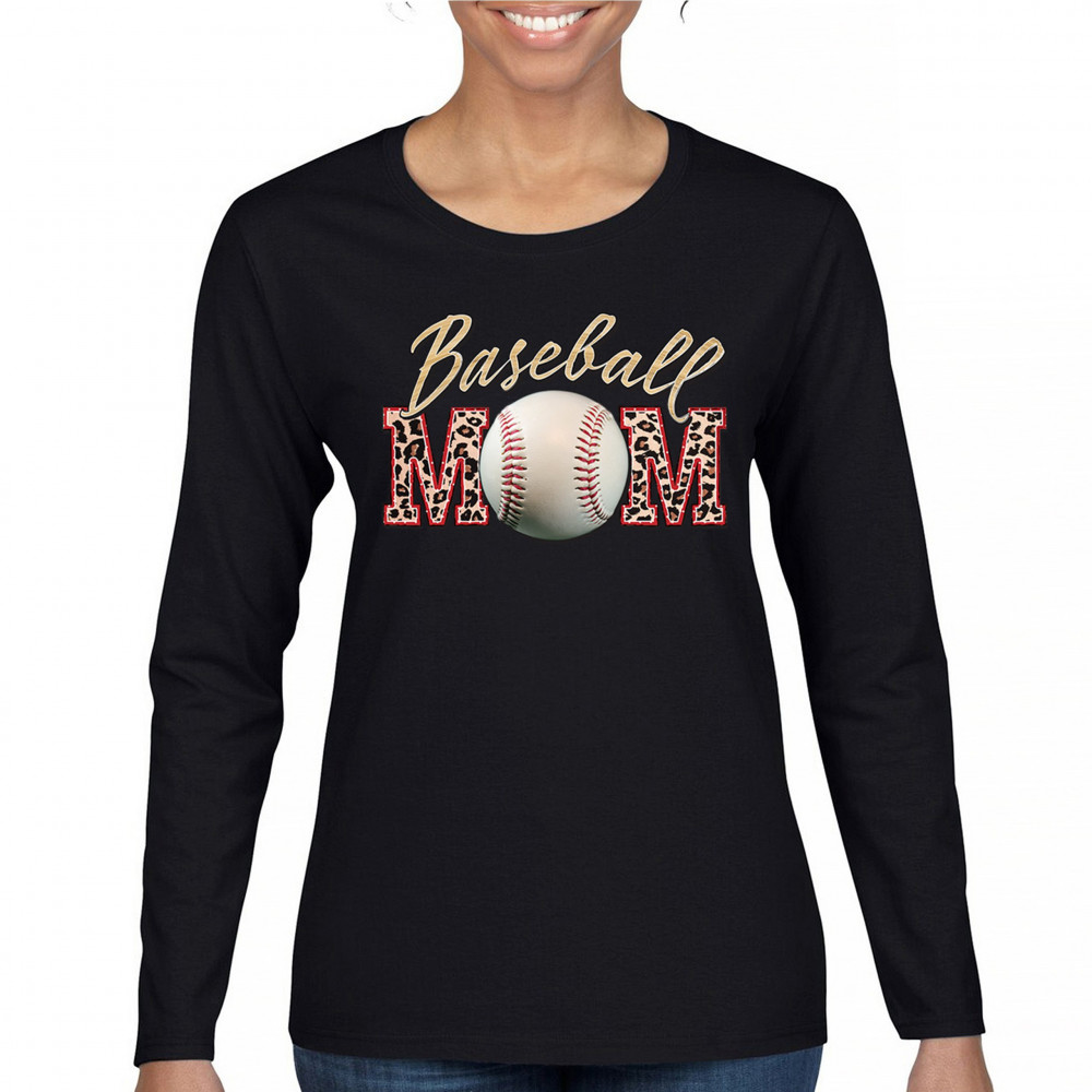 BASEBALL MOM women's long sleeve t-shirt funny mom of boys game practice black