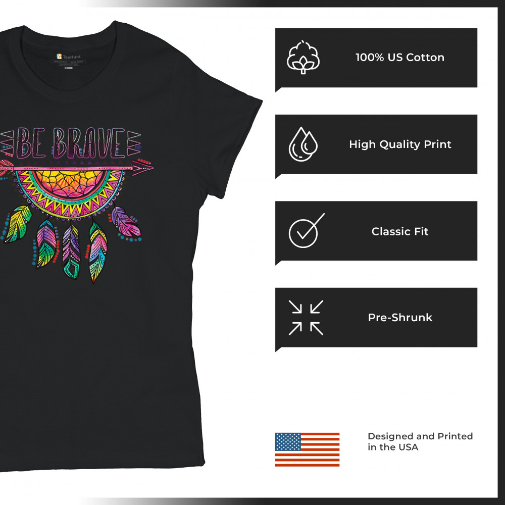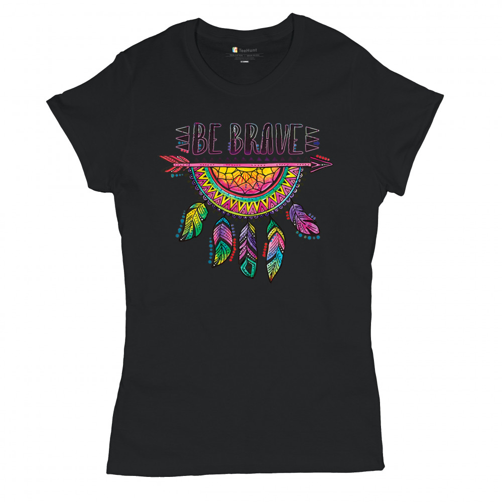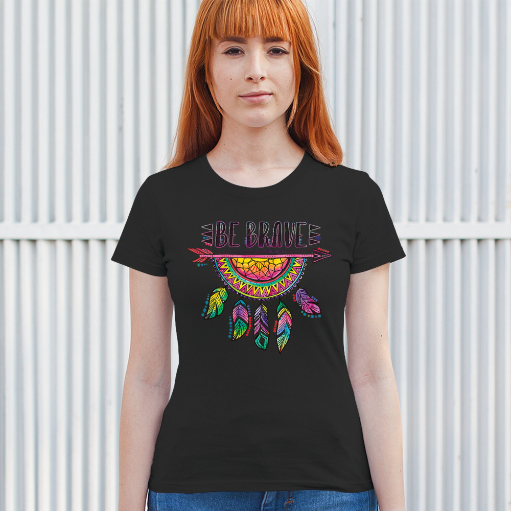 BE BRAVE DREAM CATCHER t-shirt dean russo motivation feather women's tee black