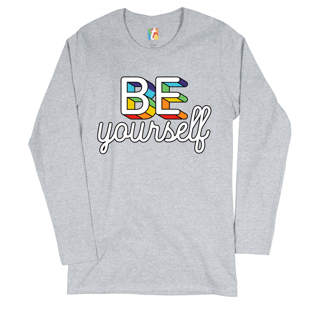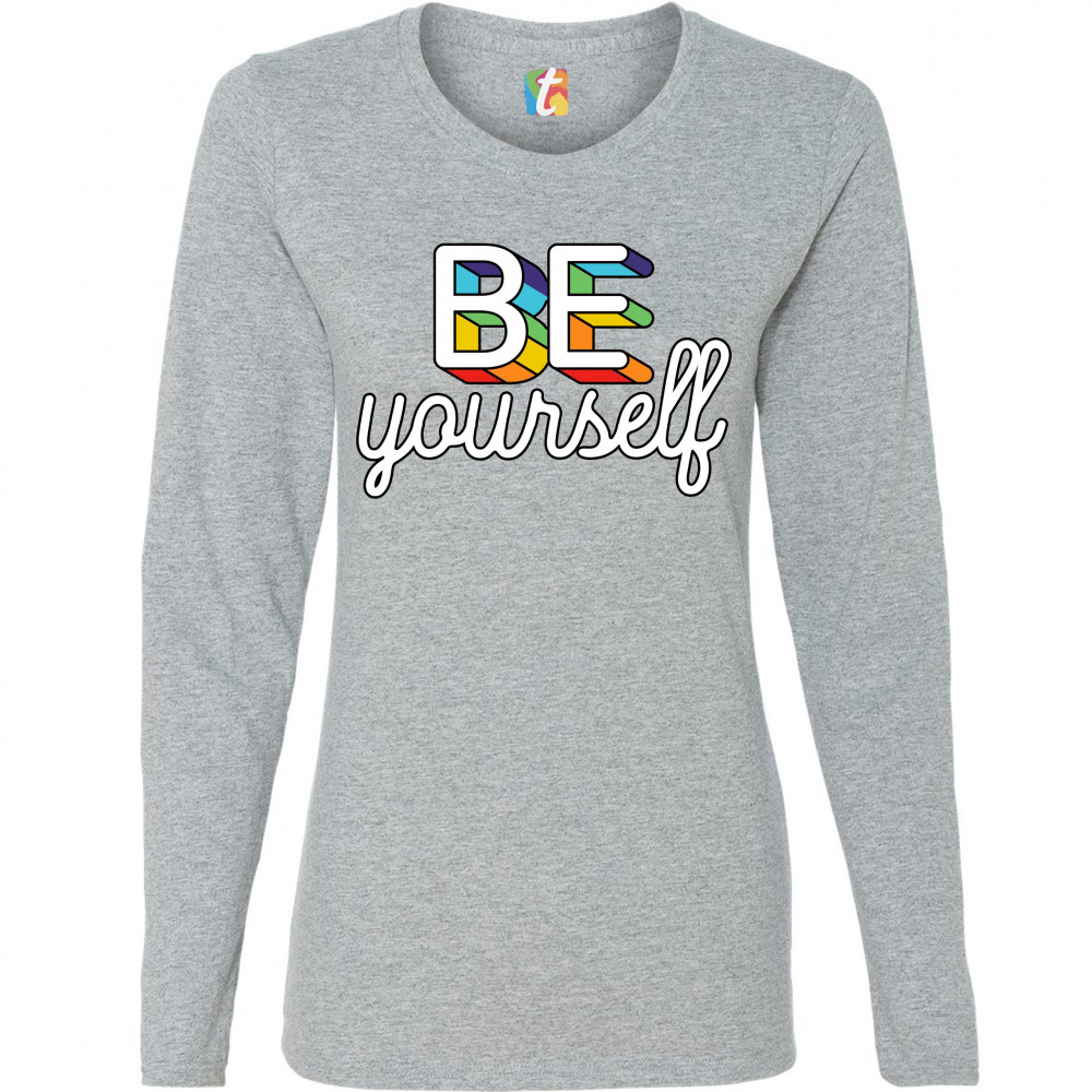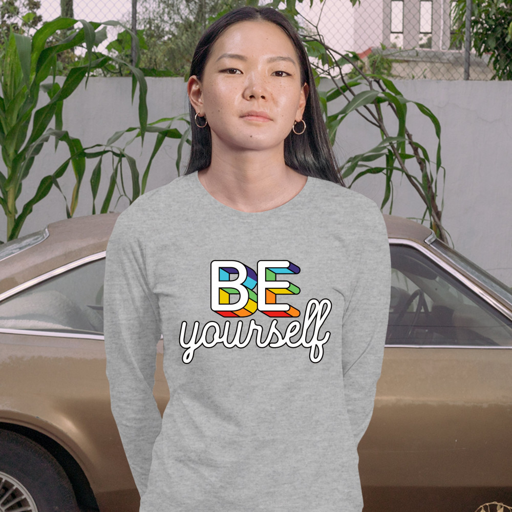 BE YOURSELF women's long sleeve t-shirt lgbt support gay pride rainbow ally gray