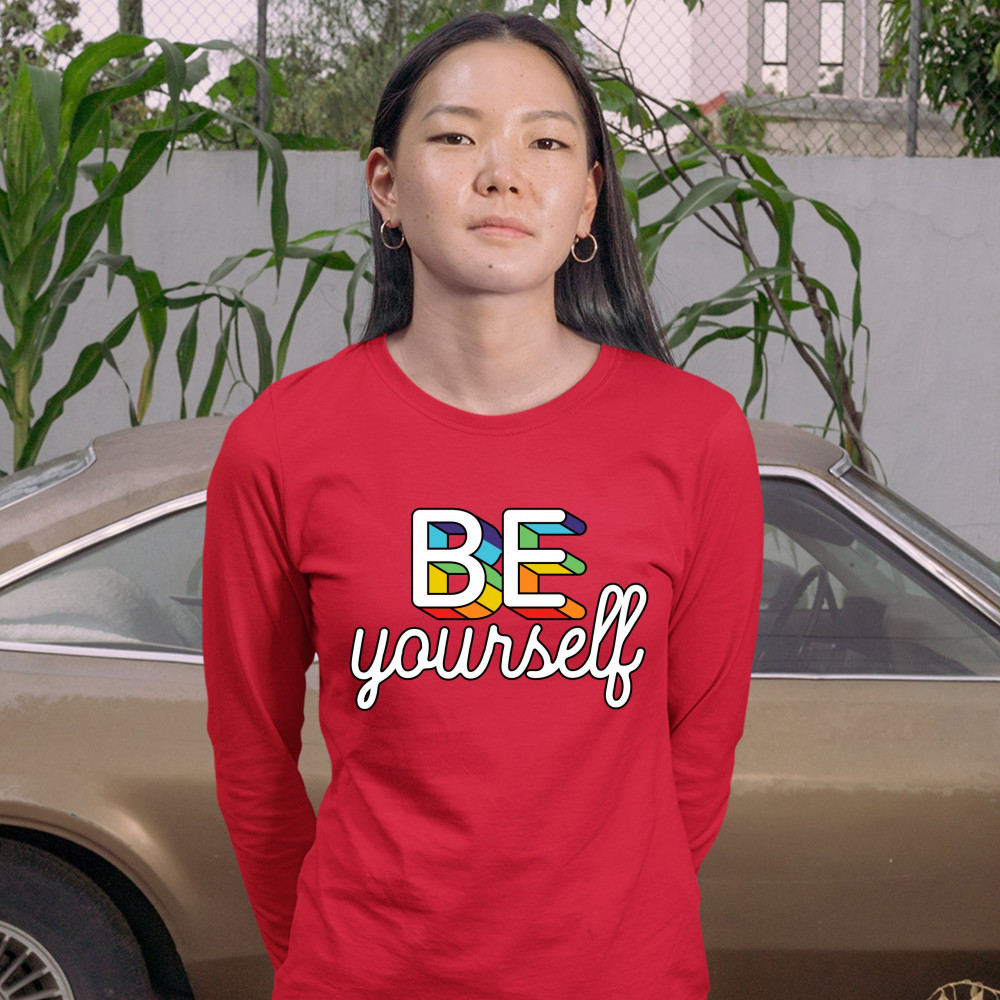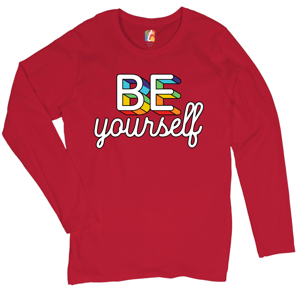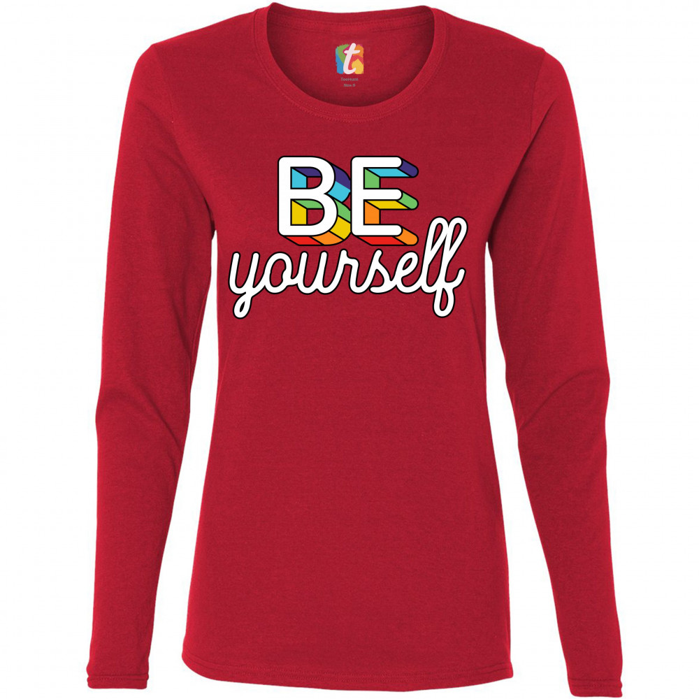 BE YOURSELF women's long sleeve t-shirt lgbt support gay pride rainbow ally red
