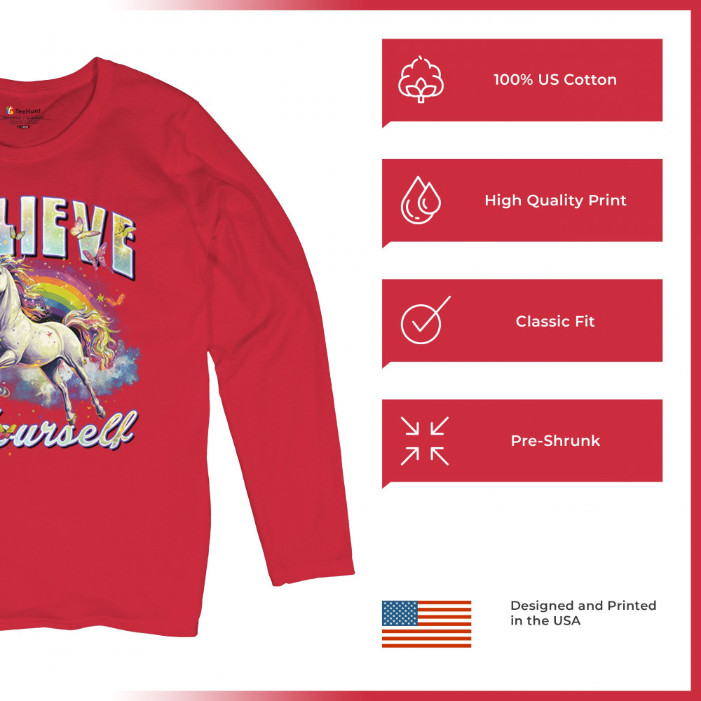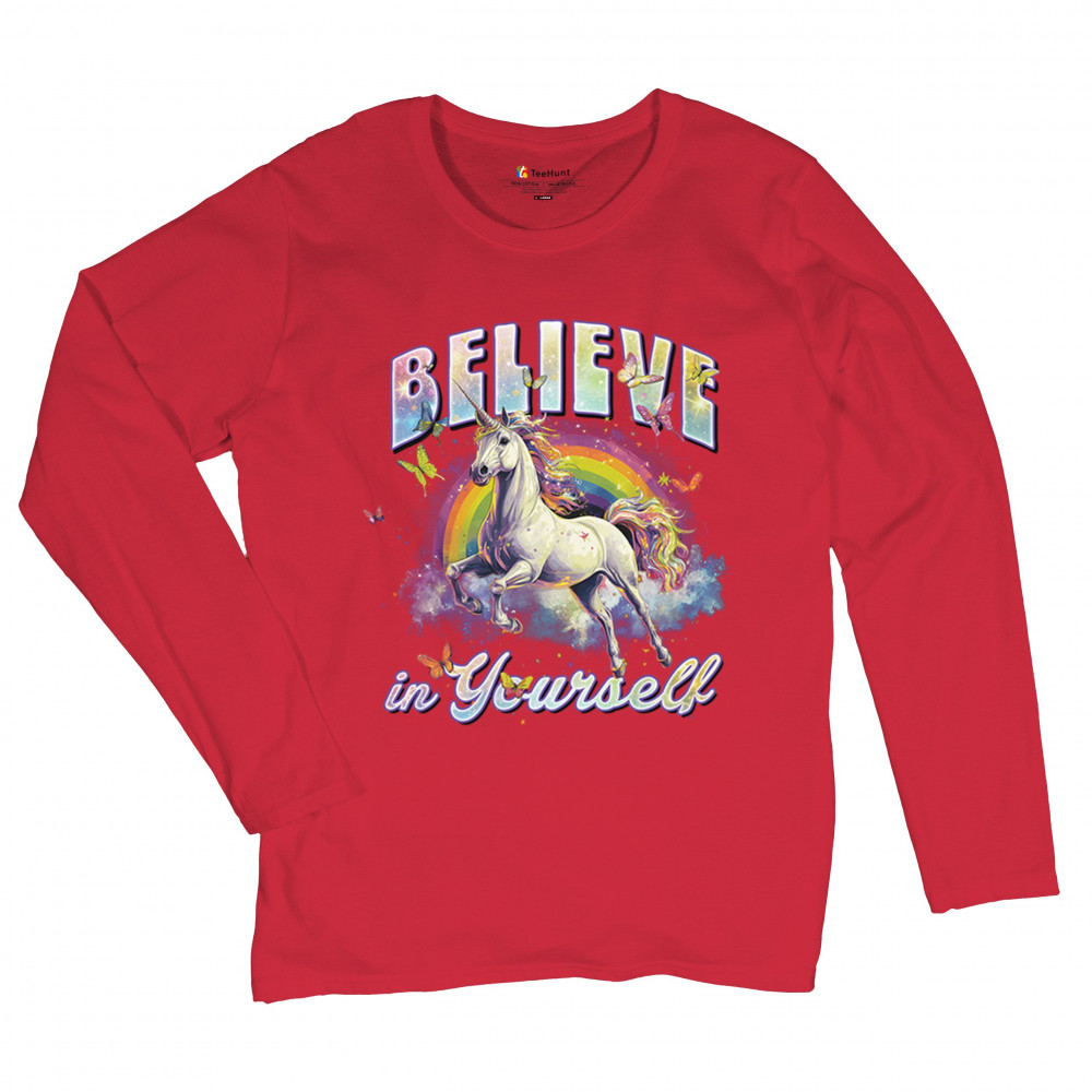 Bring fairytale magic into your everyday life with this Believe in Yourself unicorn rainbow design. Featuring whimsical unicorn shirt details, fantasy rainbow shirt colors, and enchanted unicorn shirt sparkle, it inspires positivity and confidence. A magical rainbow unicorn and galaxy unicorn shirt full of charm, sparkle unicorn shirt vibes, and uplifting energy for all dreamers.