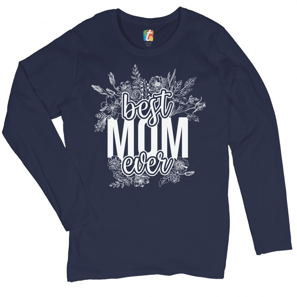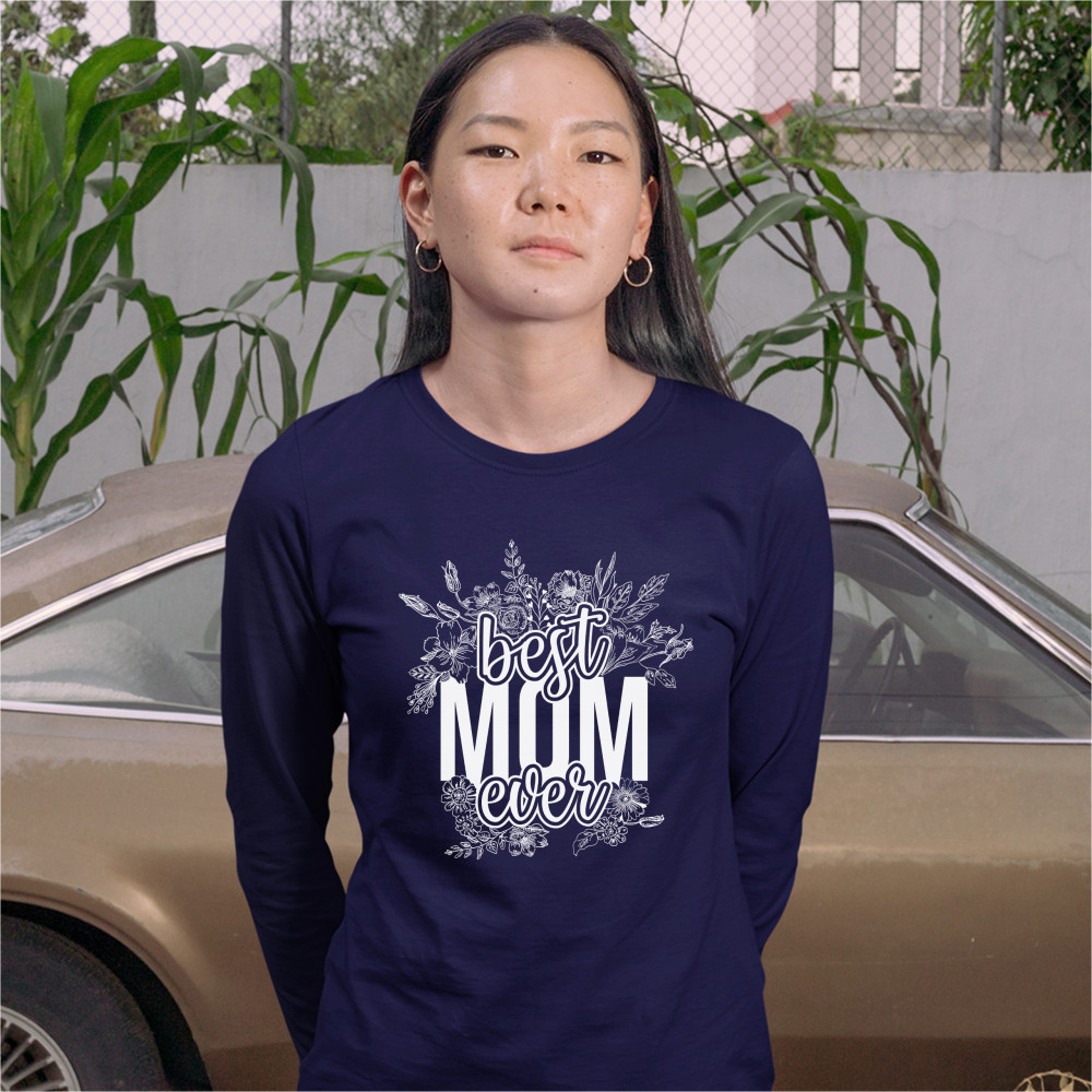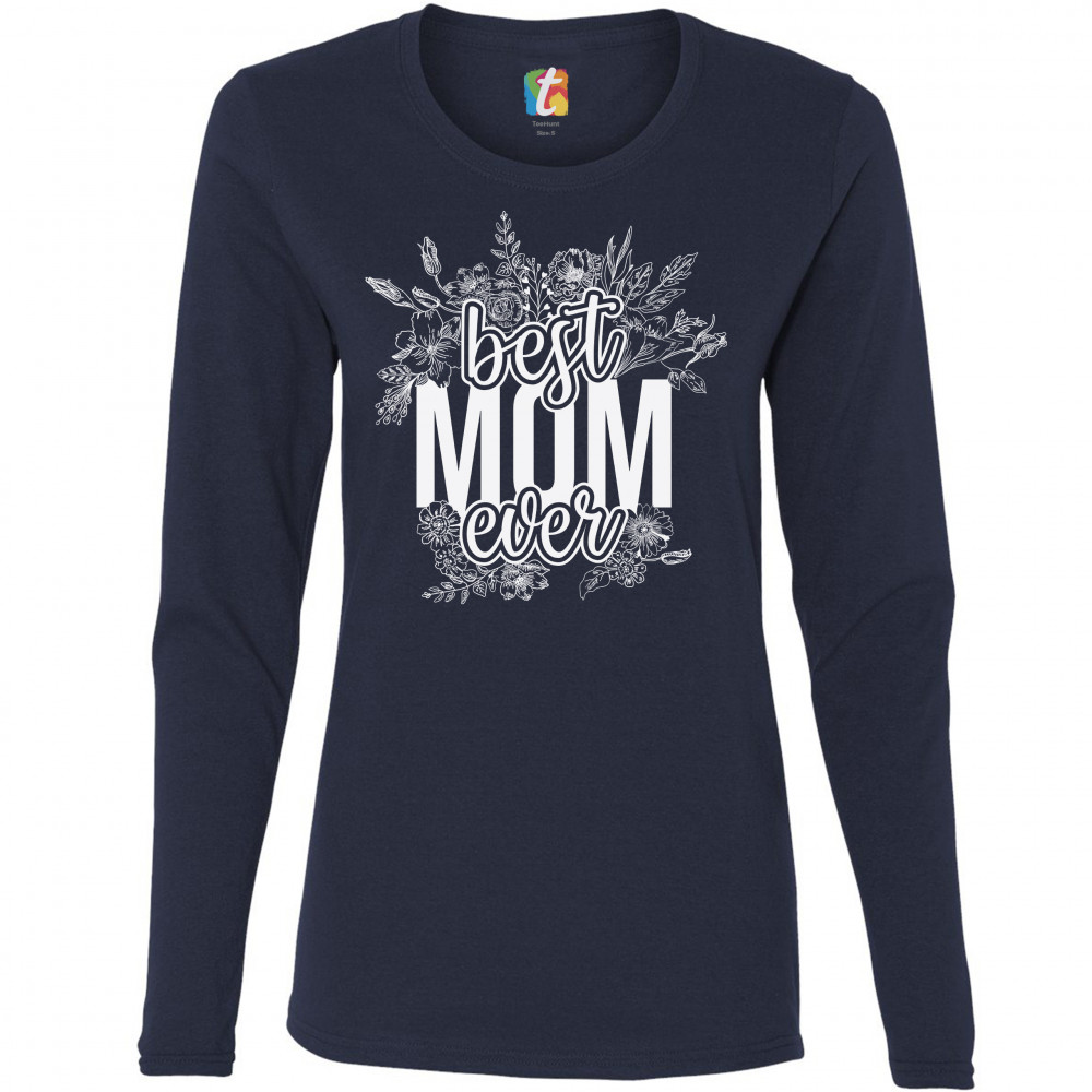 BEST MOM EVER women's long sleeve t-shirt blessed mama mother's day maternity navy blue