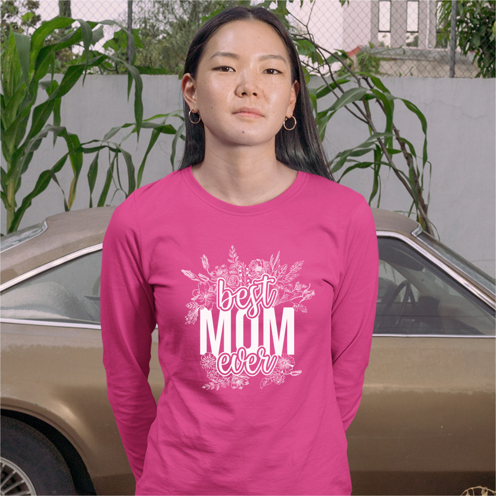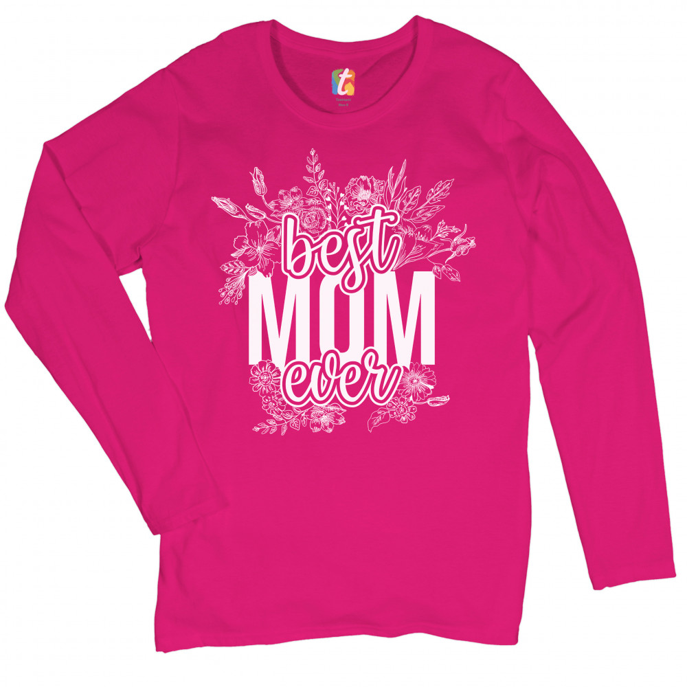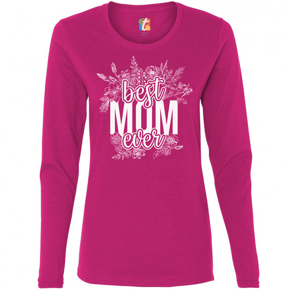 BEST MOM EVER women's long sleeve t-shirt blessed mama mother's day maternity hot pink
