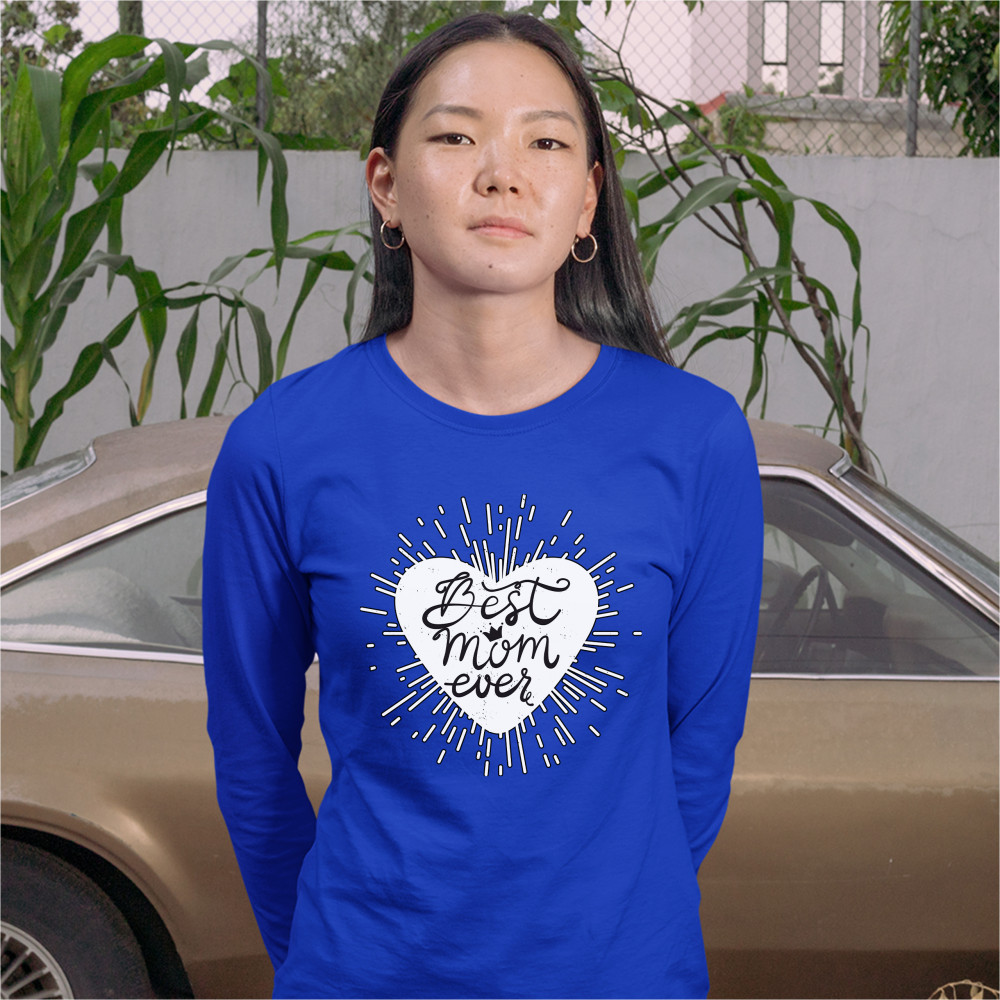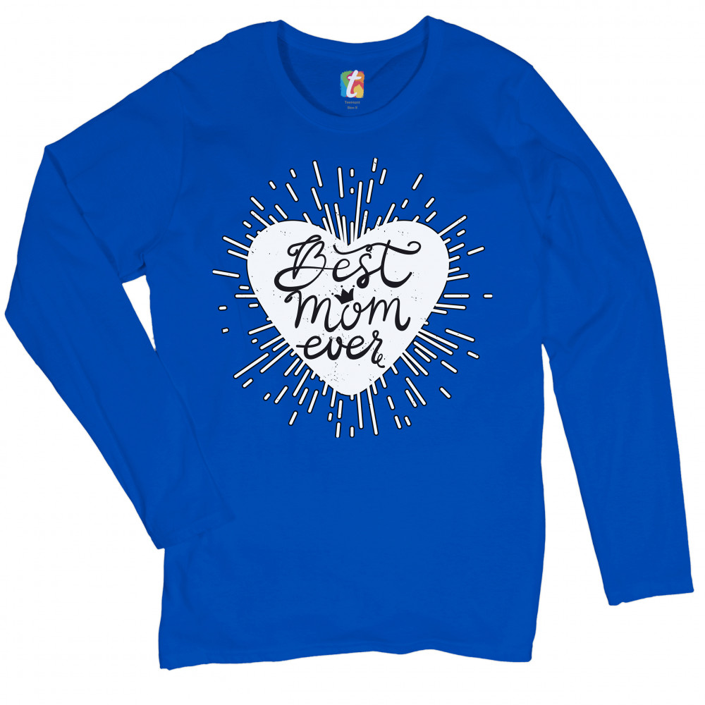BEST MOM EVER women's long sleeve t-shirt mother's day motherhood maternity royal blue