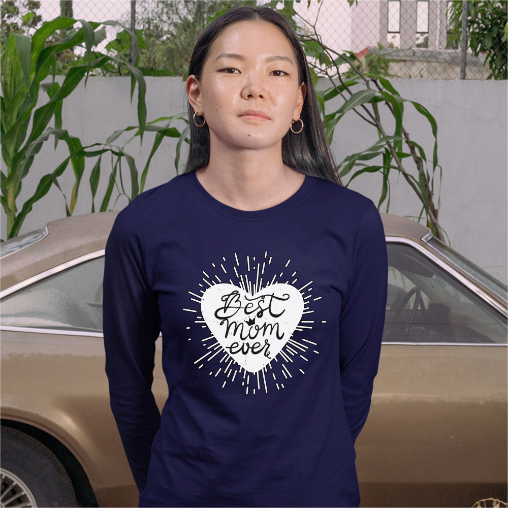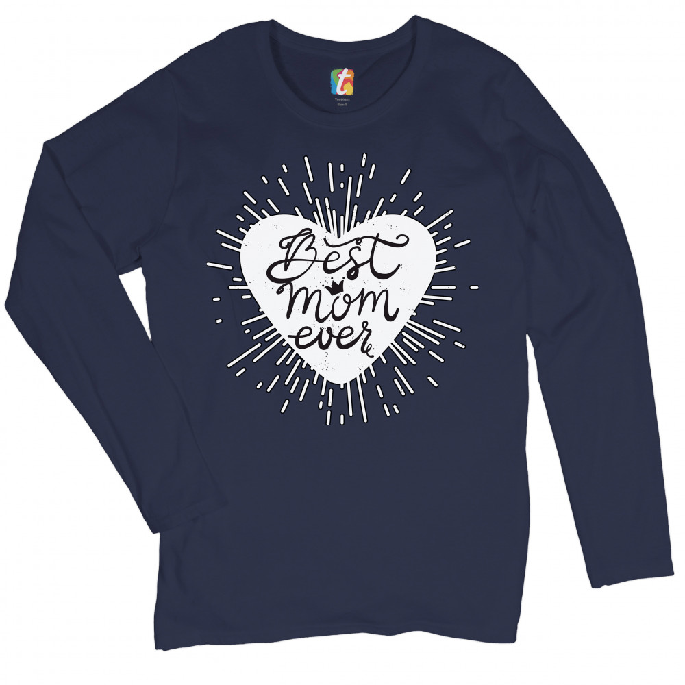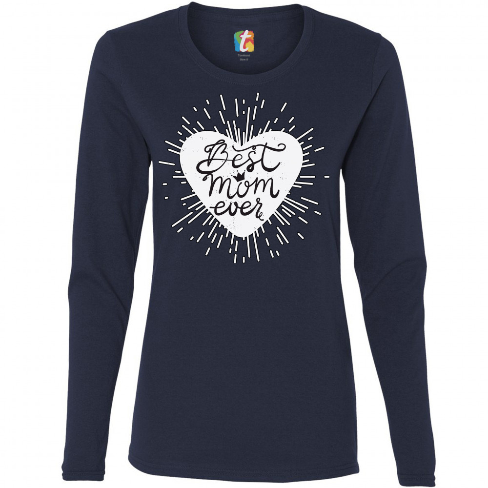 BEST MOM EVER women's long sleeve t-shirt mother's day motherhood maternity navy blue