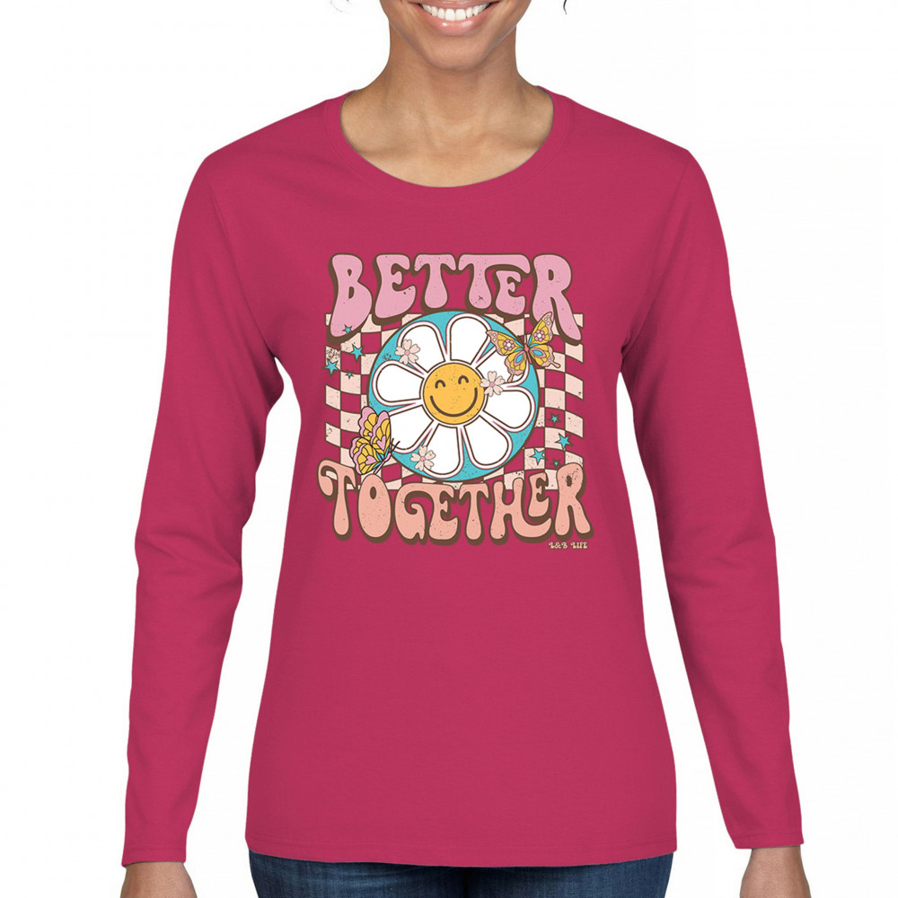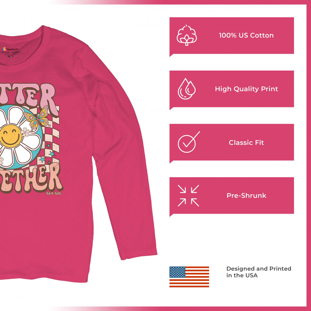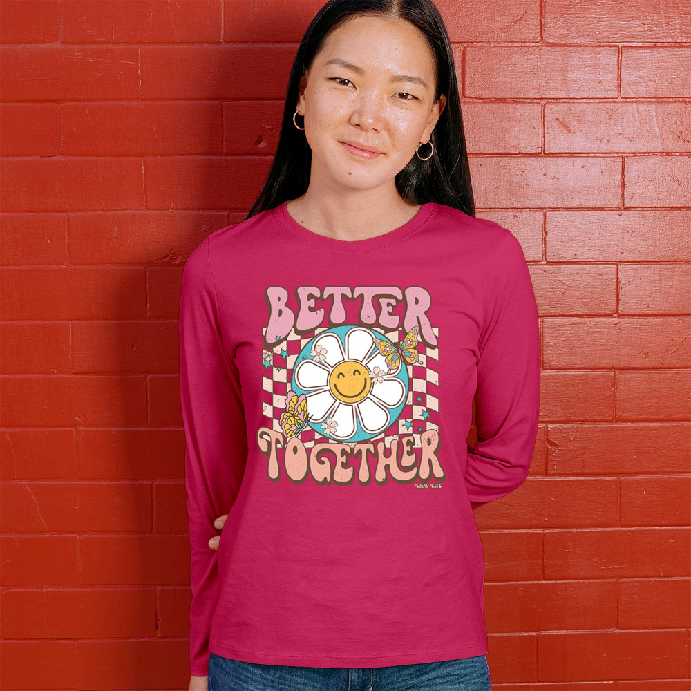 Join us in celebrating the simple joys with our "Better Together" design, where happiness blooms and friendships flutter like butterflies. This artwork is a sweet embrace of unity, crafted to bring smiles and a touch of retro charm to your life. It’s a delightful addition to any collection, symbolizing the belief that life's moments are sweeter shared. Adorn your favorite space with a design that's as warm and welcoming as a sunny day.