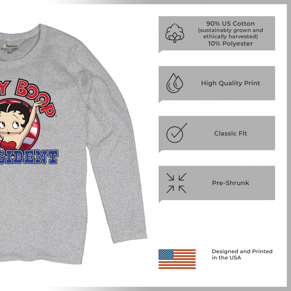 Show your playful side with the Betty Boop for President shirt! Perfect for cartoon lovers and fans of unique, humorous designs. Ideal gift for all occasions.