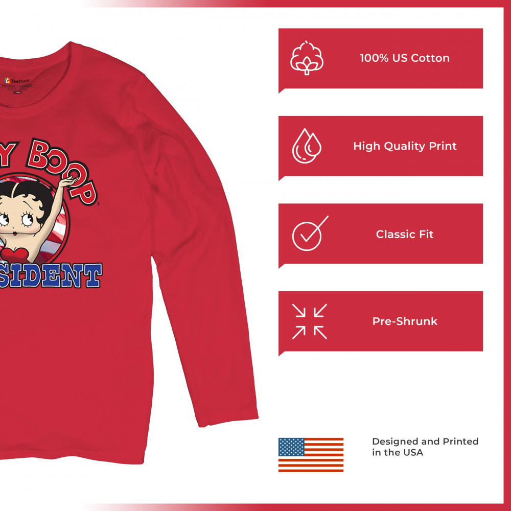 Show your playful side with the Betty Boop for President shirt! Perfect for cartoon lovers and fans of unique, humorous designs. Ideal gift for all occasions.