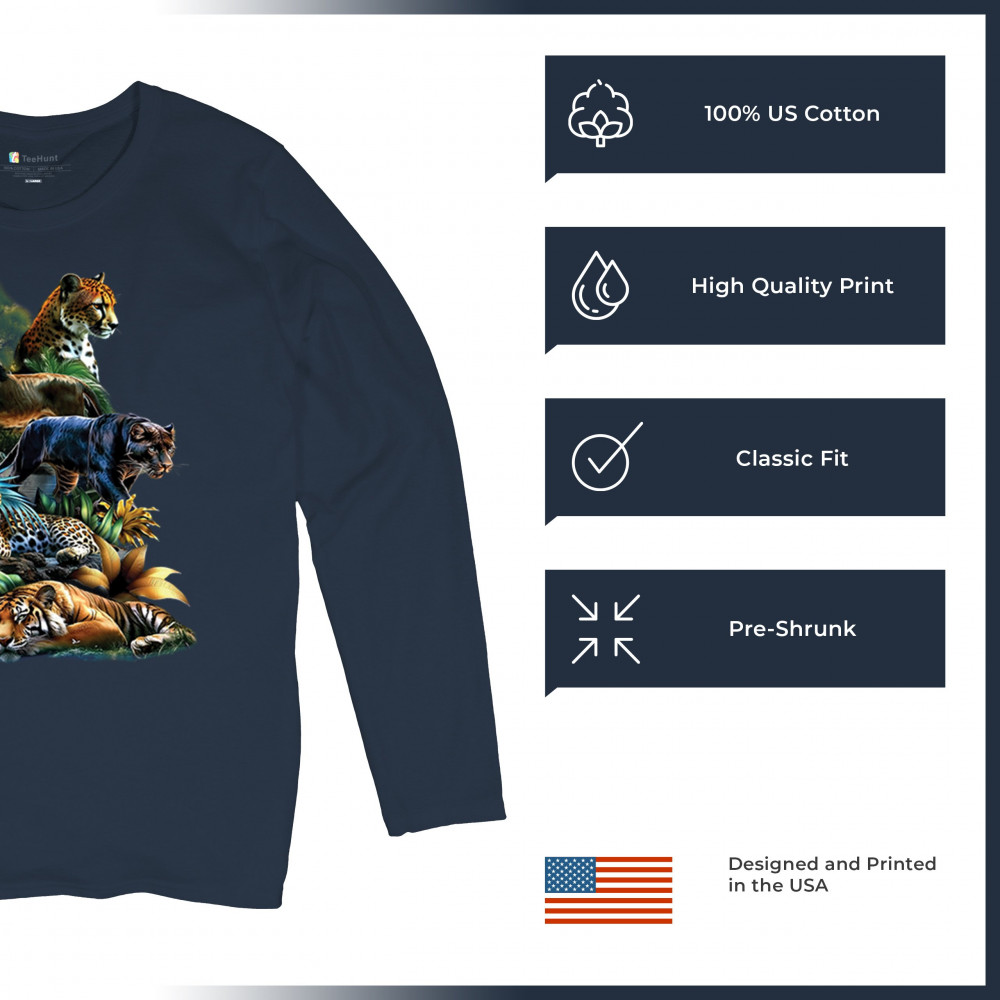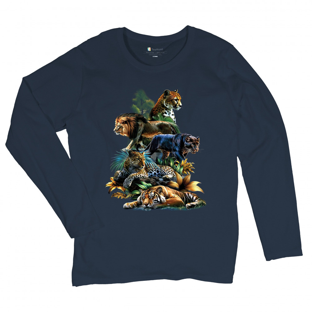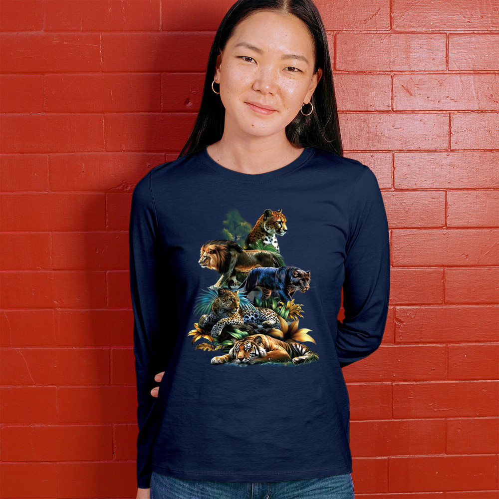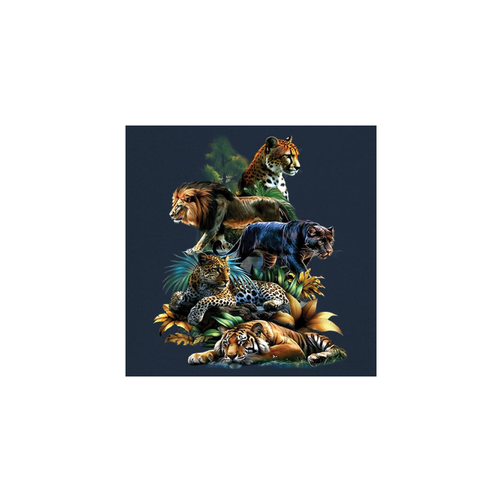 Bold big cat design with lion, tiger, leopard, cheetah, jaguar, and panther. A vivid tribute to wild nature, pride, and animal power.