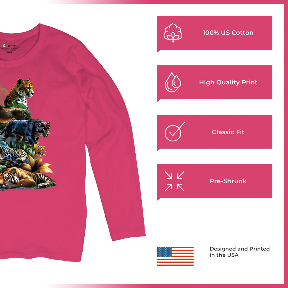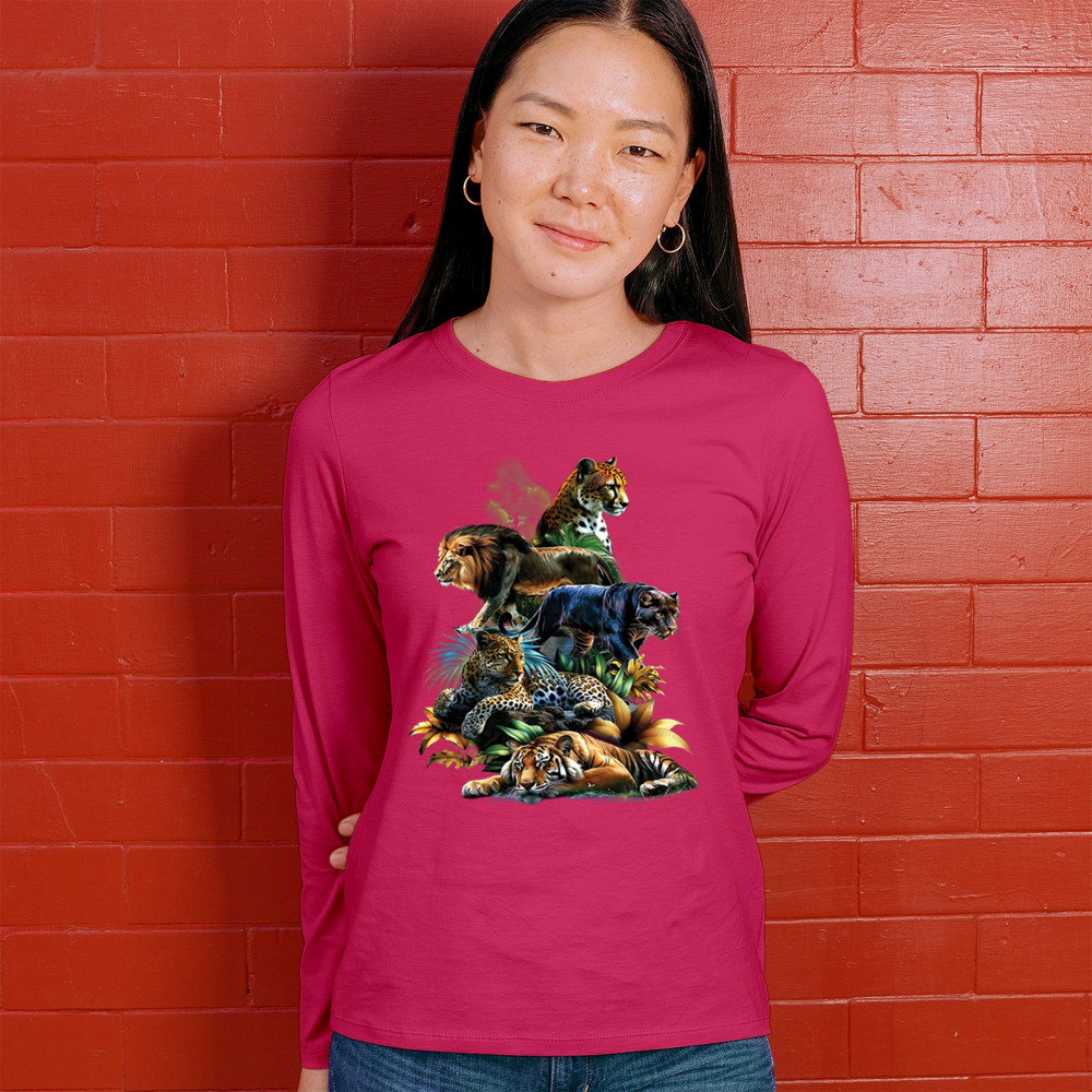 Bold big cat design with lion, tiger, leopard, cheetah, jaguar, and panther. A vivid tribute to wild nature, pride, and animal power.