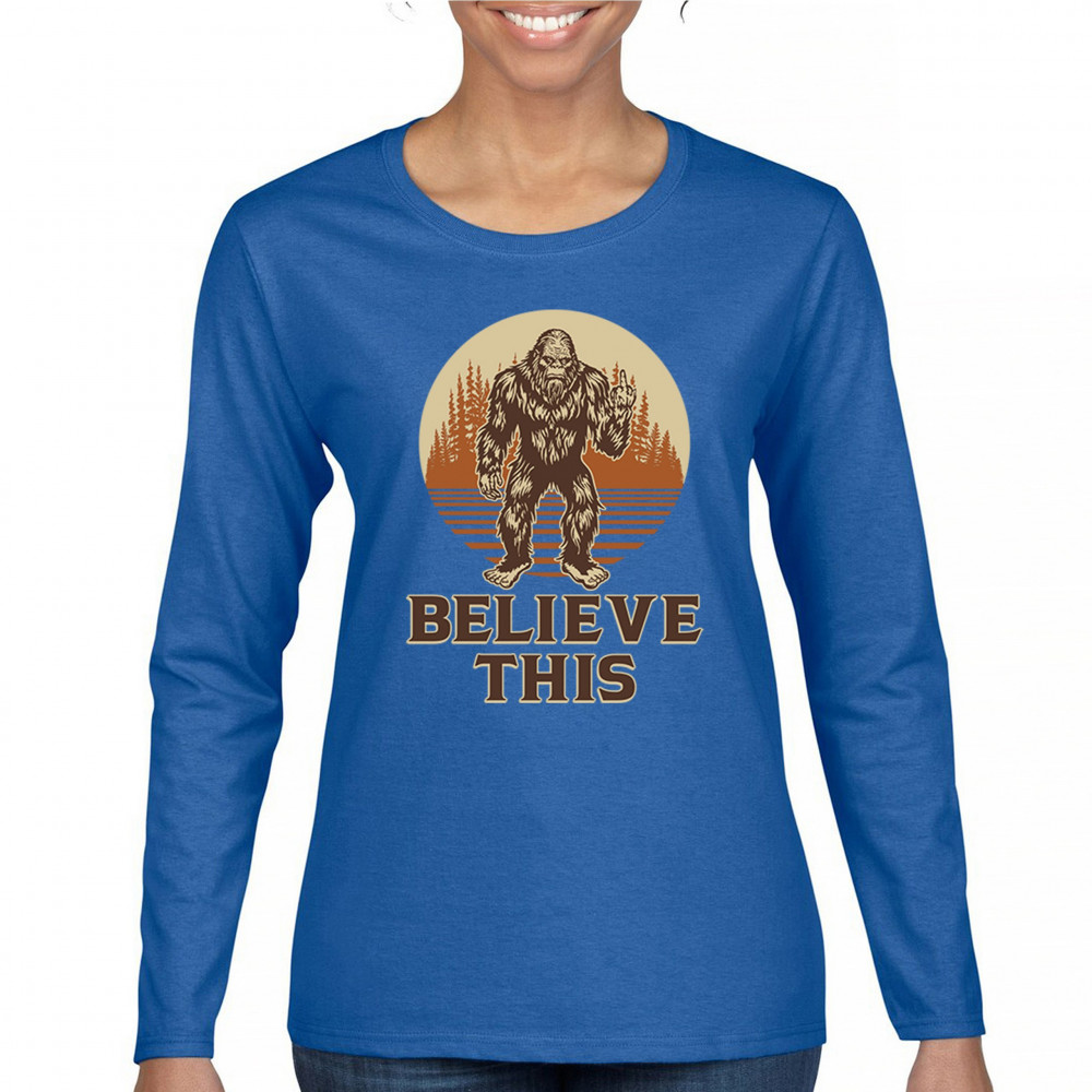 The Believe This Bigfoot design blends cryptid folklore with blunt attitude—because sometimes you just don’t care who believes. Featuring Bigfoot flipping the bird against a rustic tree line, it’s perfect for campers, rebels, and fans of sarcastic forest humor. Ideal for hikes, festivals, and off-grid living.