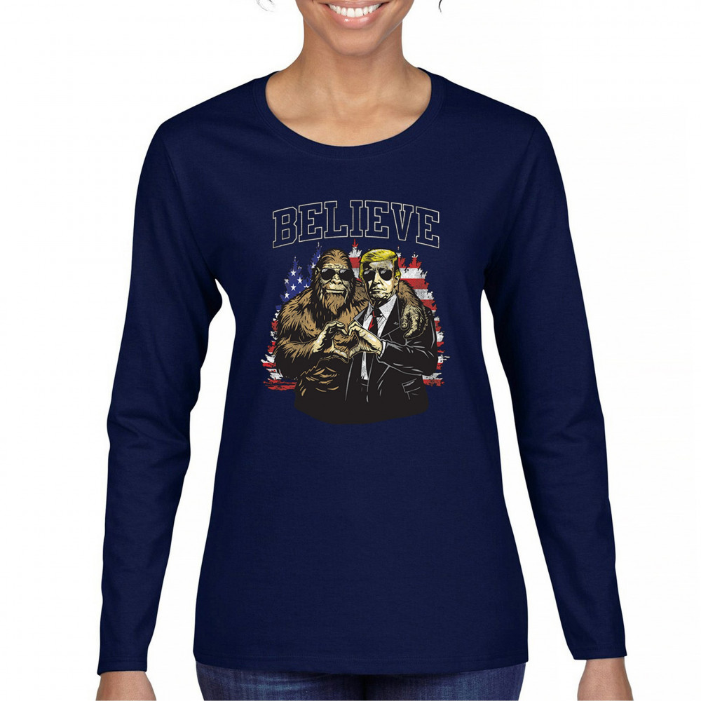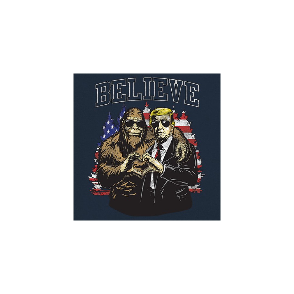 The "Believe" design combines patriotic pride and conservative values with a touch of fun. Featuring Donald J. Trump and a loyal Bigfoot against the American flag, this graphic is perfect for Trump supporters, Republicans, and believers in America First. Celebrate the Red Wave, the 47th President, and the unstoppable fight for victory. Ideal for anyone with unwavering belief in the people's mandate.