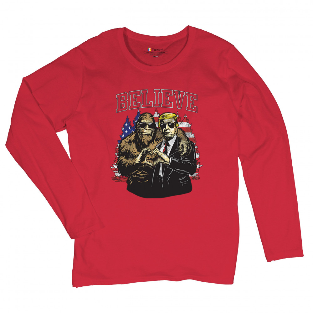 Show your belief with Trump and Bigfoot! Celebrate America First, the Red Wave, and conservative pride with this unique and patriotic design.