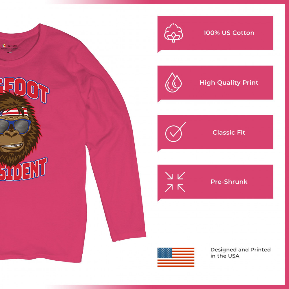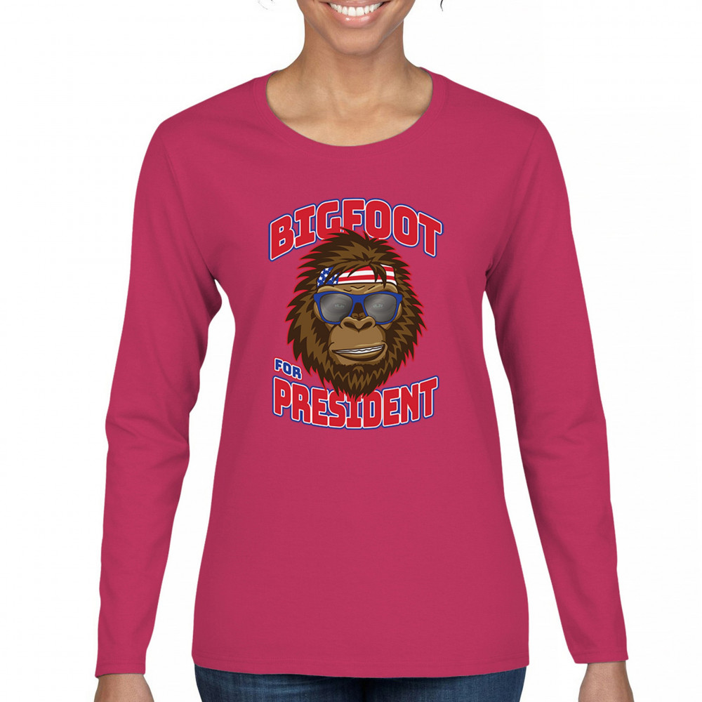 Show off your quirky style with the "Bigfoot for President" design. Perfect for casual wear and parties, featuring Bigfoot in sunglasses and a patriotic bandana.