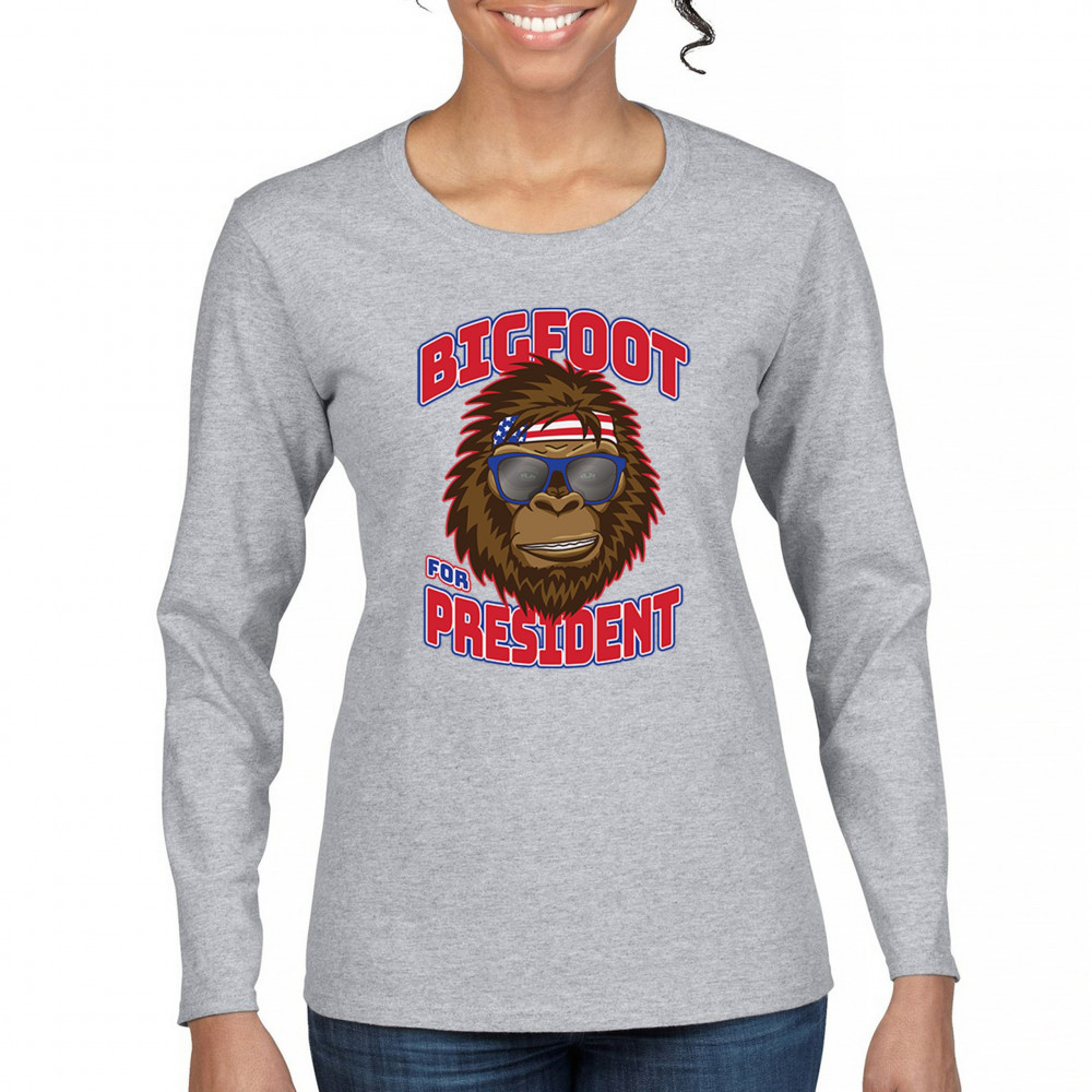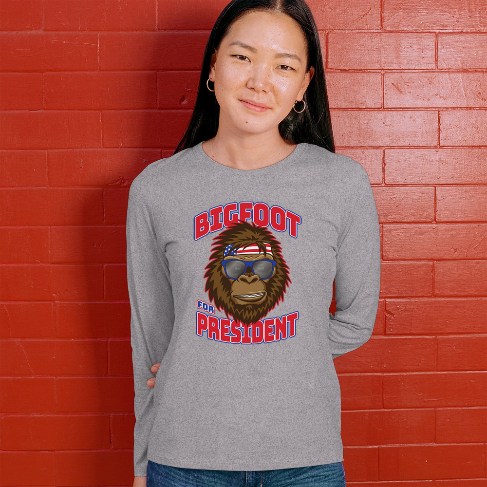 Show off your quirky style with the "Bigfoot for President" design. Perfect for casual wear and parties, featuring Bigfoot in sunglasses and a patriotic bandana.