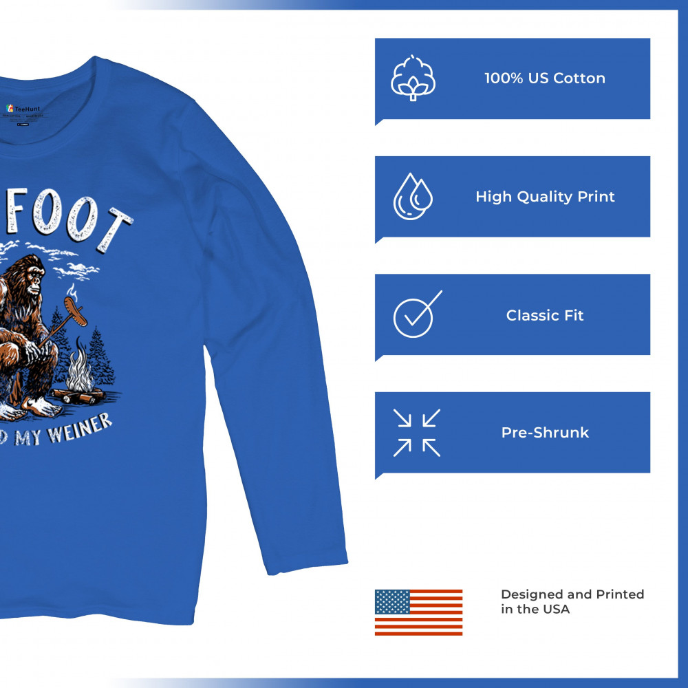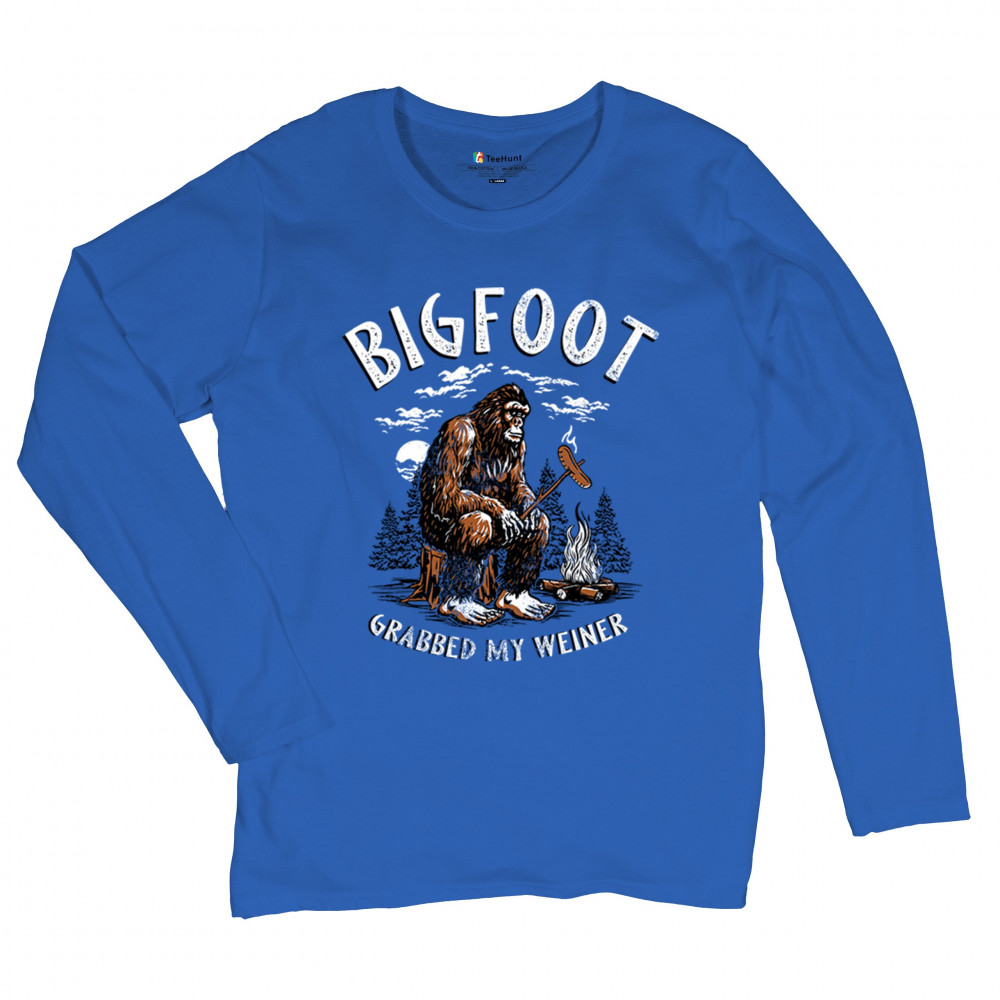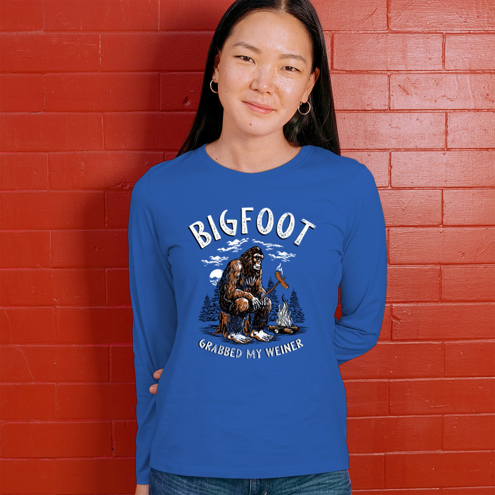The Bigfoot Grabbed My Weiner design brings cheeky campfire humor to your outdoor adventures. Featuring a cartoon-style Sasquatch roasting a sausage by the fire, it’s perfect for cryptid lovers, campers, and jokesters. Ideal for BBQs, bonfires, forest festivals, and anyone who enjoys weiner jokes with their wilderness.