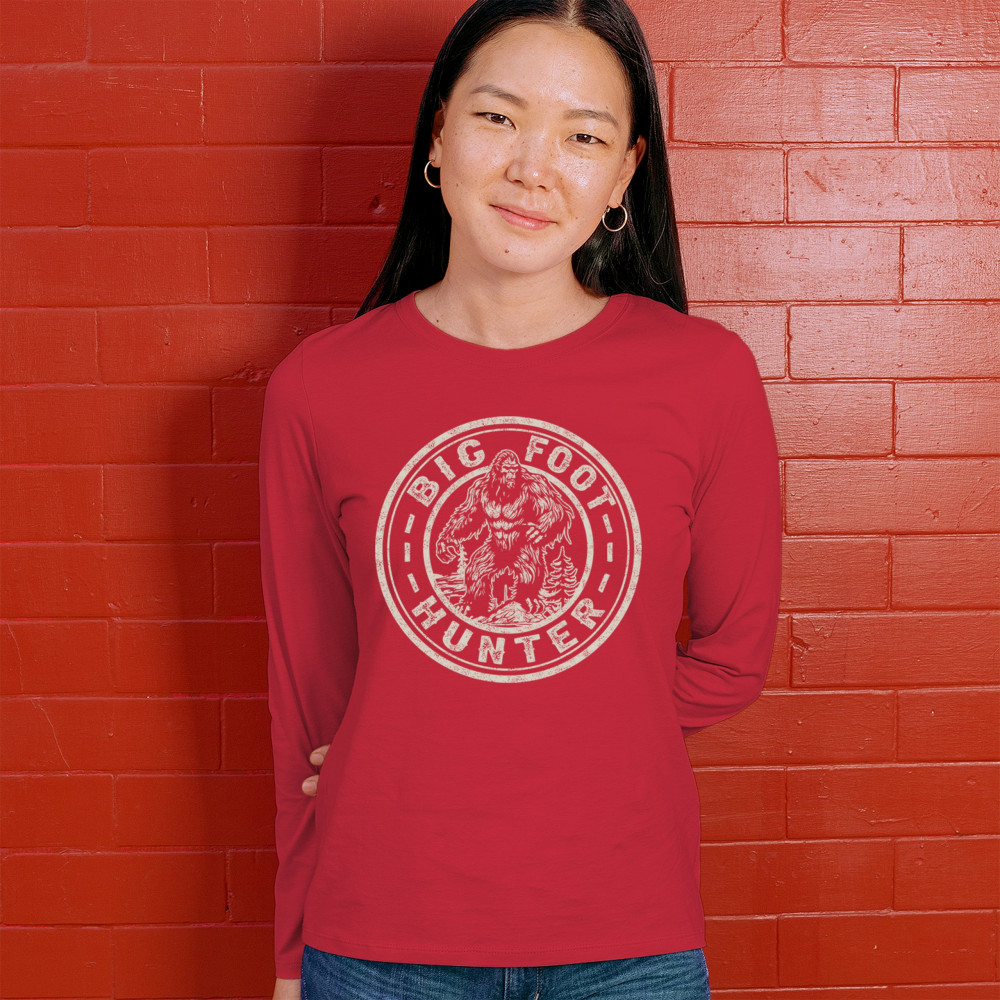 Capture the spirit of adventure with the "Bigfoot Hunter" design! Perfect for cryptid fans and outdoor enthusiasts, featuring a bold Sasquatch graphic.