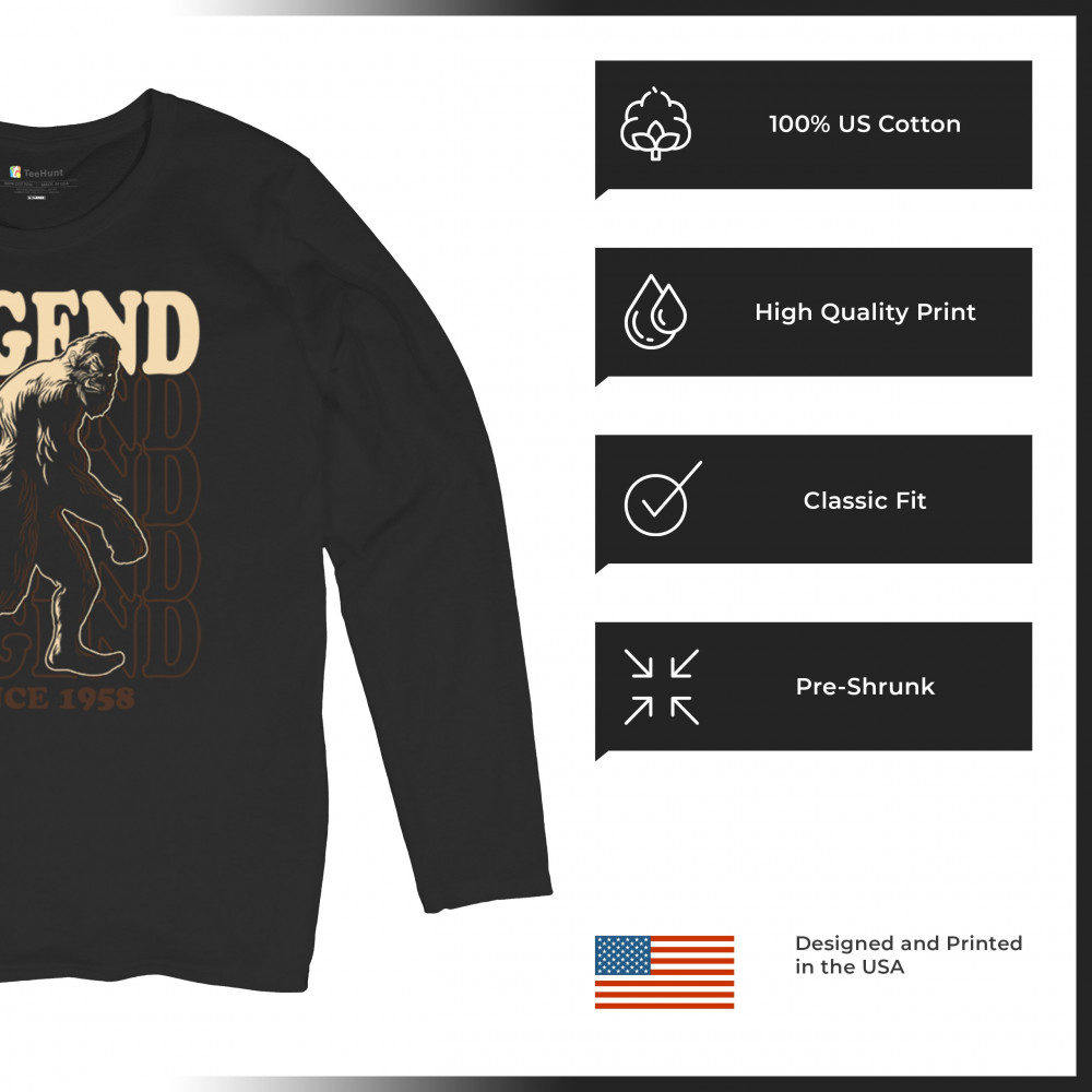 Celebrate the legend of Bigfoot since 1958 with this unique design. Perfect for fans of cryptozoology and mythical creatures.